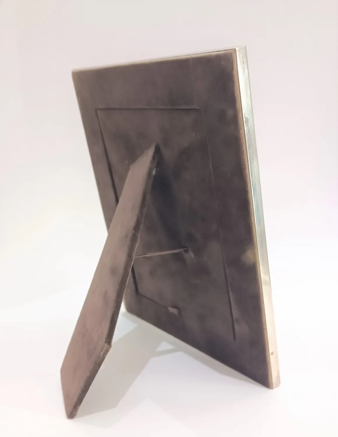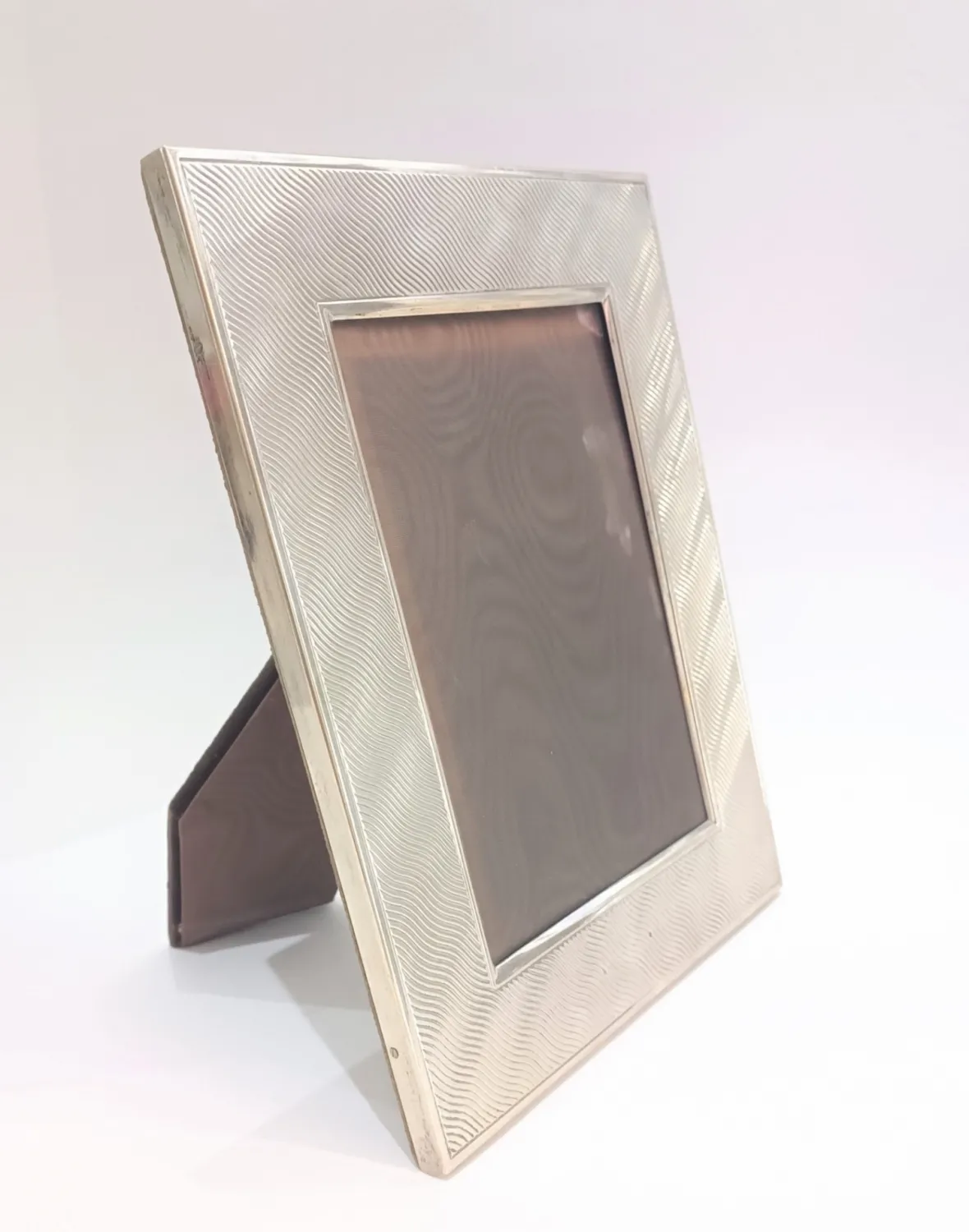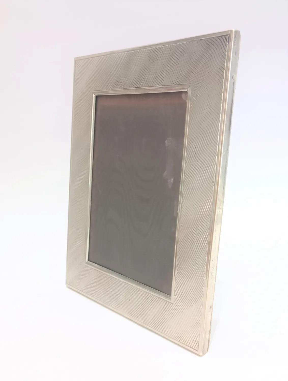 Stříbrný rámeček na fotografii zdobený vroubkovanými vlnkami, Ag btto 409,85g, netto 300g/800/1000, 40. – 50. léta 20. století, nově puncováno; výška 25,8 cm, šířka 20,7 cm.
