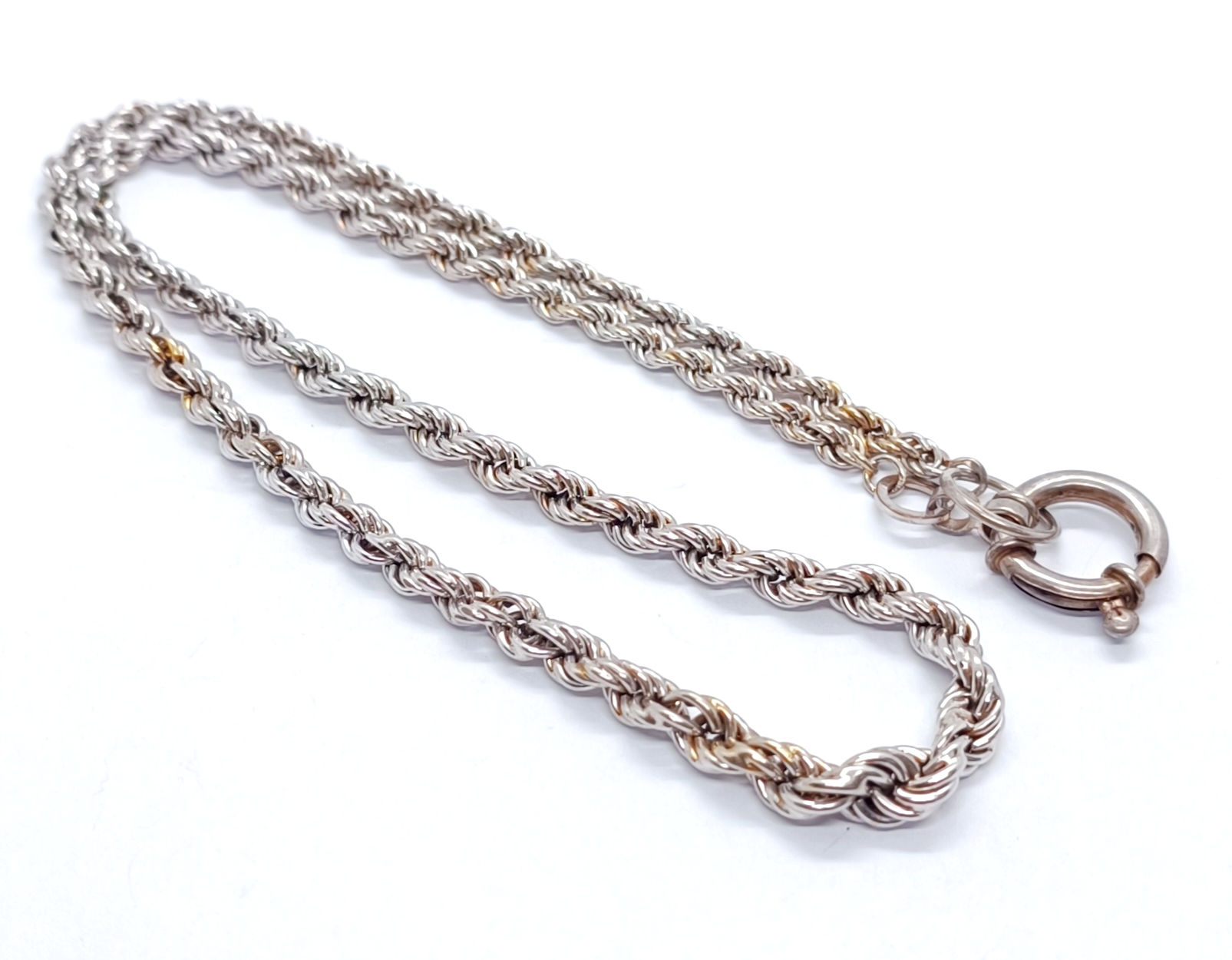 Stříbrný splétaný řetízek, tzv. valis, Ag 28,22g/835/1000, zapínání 925/1000, Československo, 50. léta 20. století; délka 45 cm