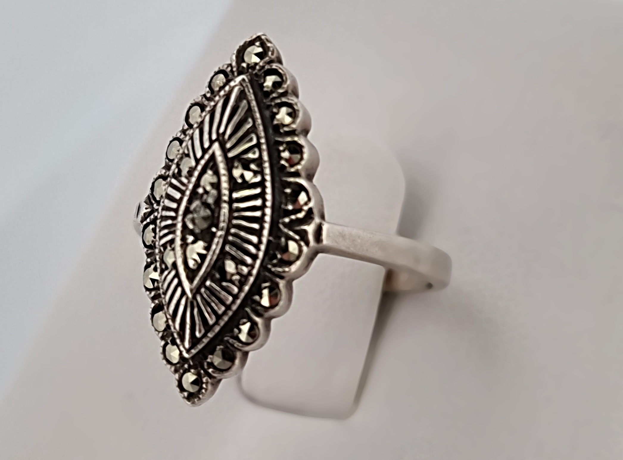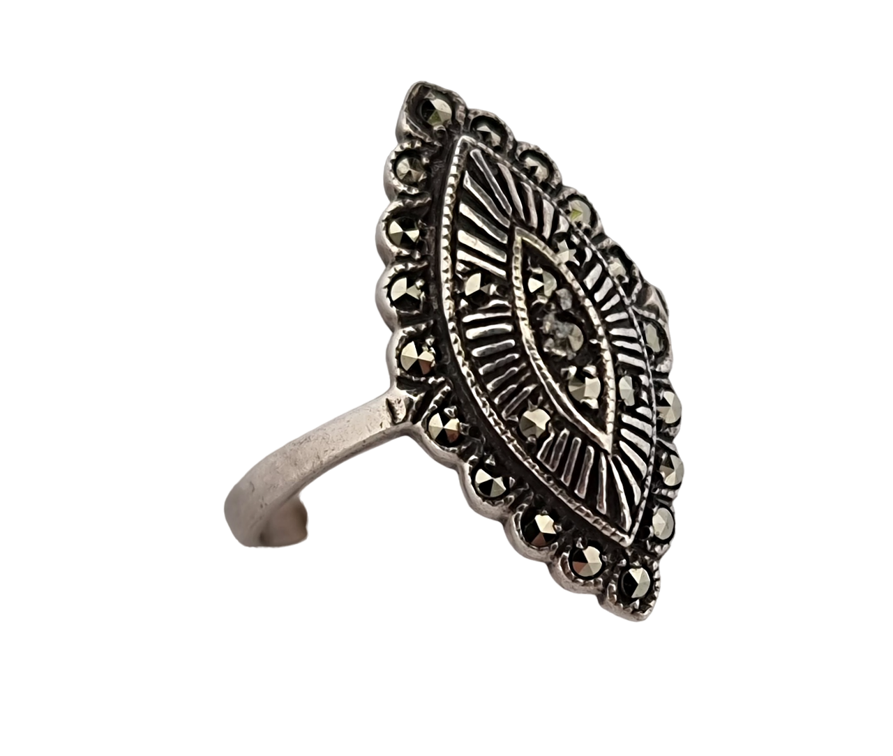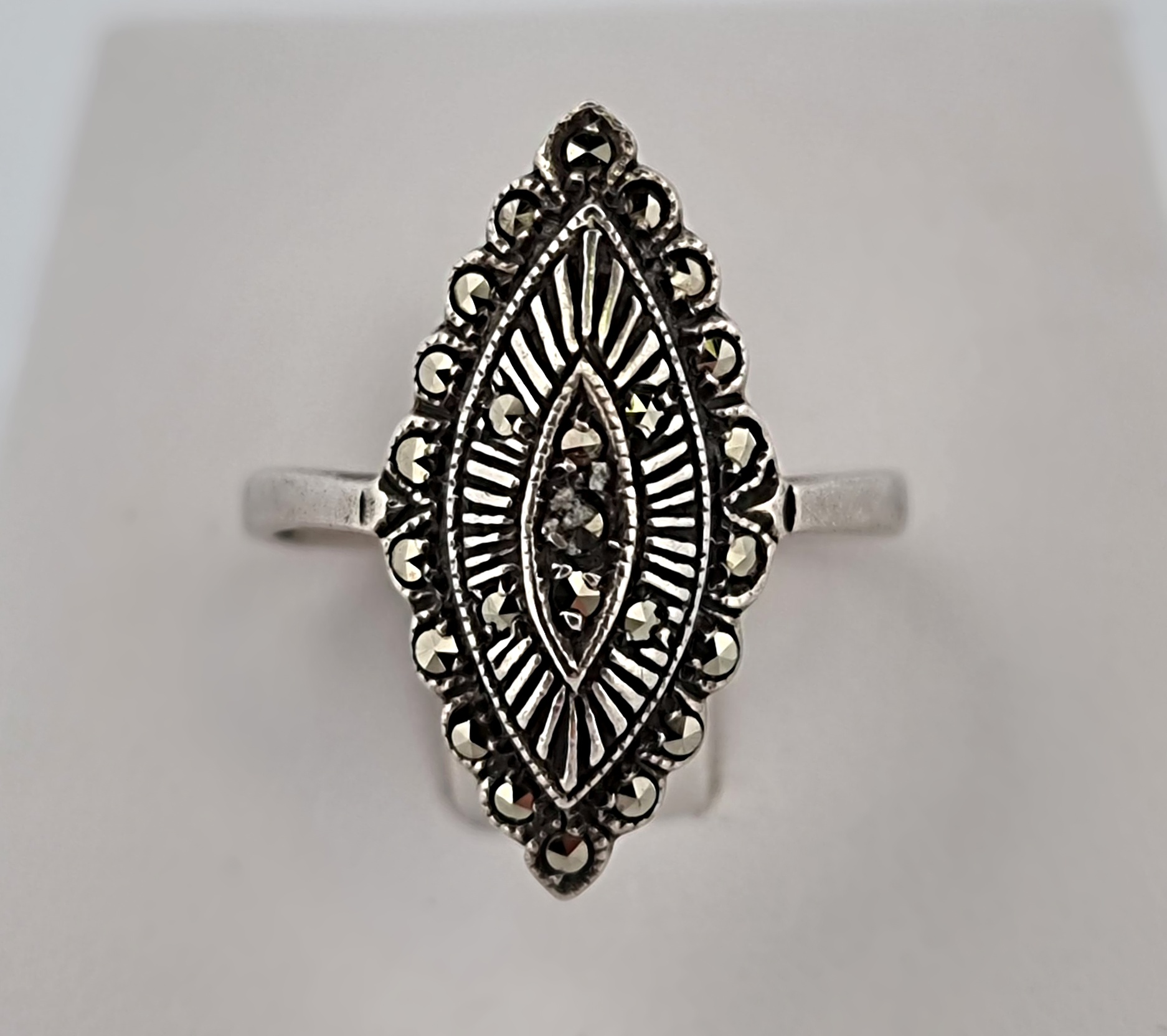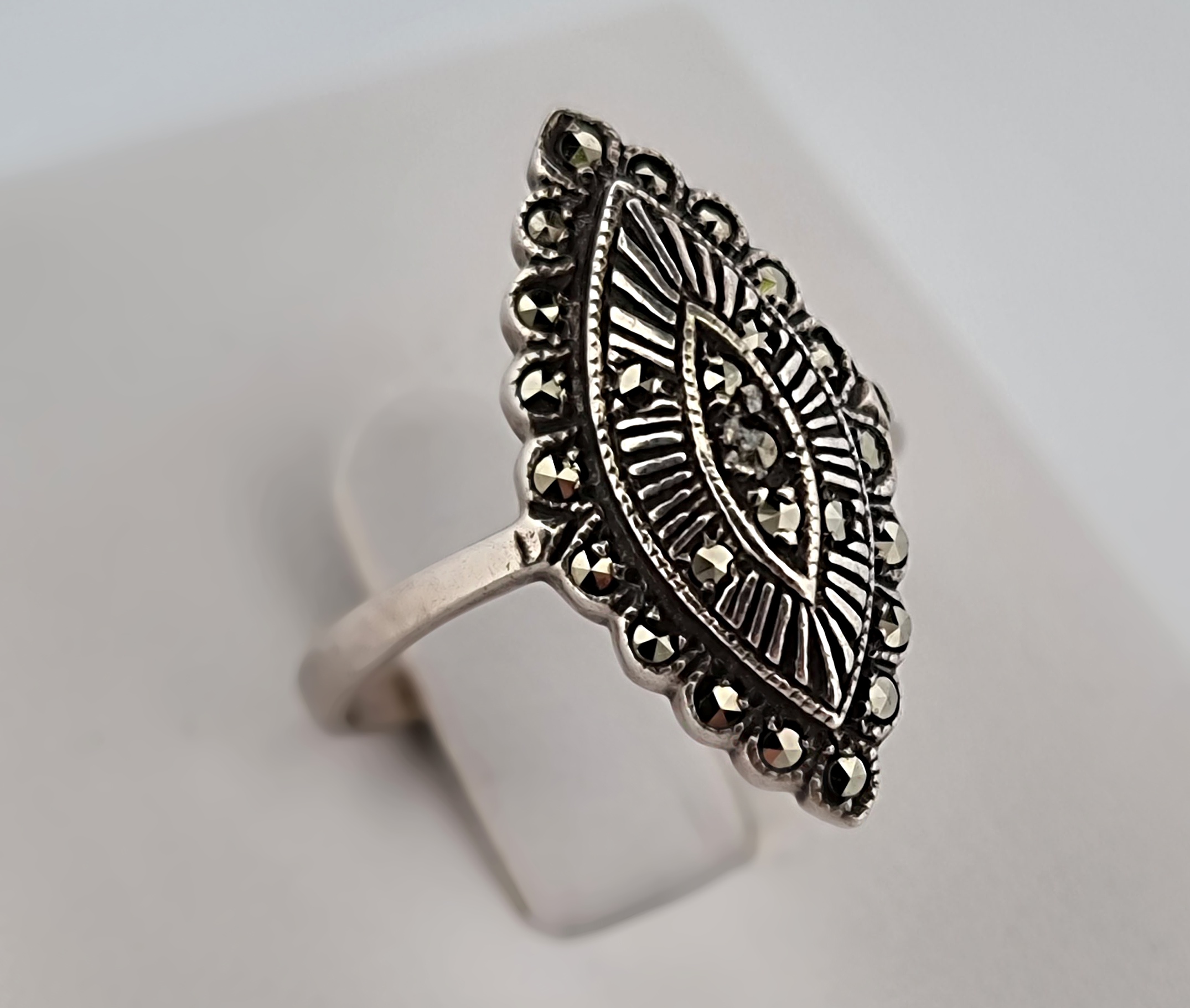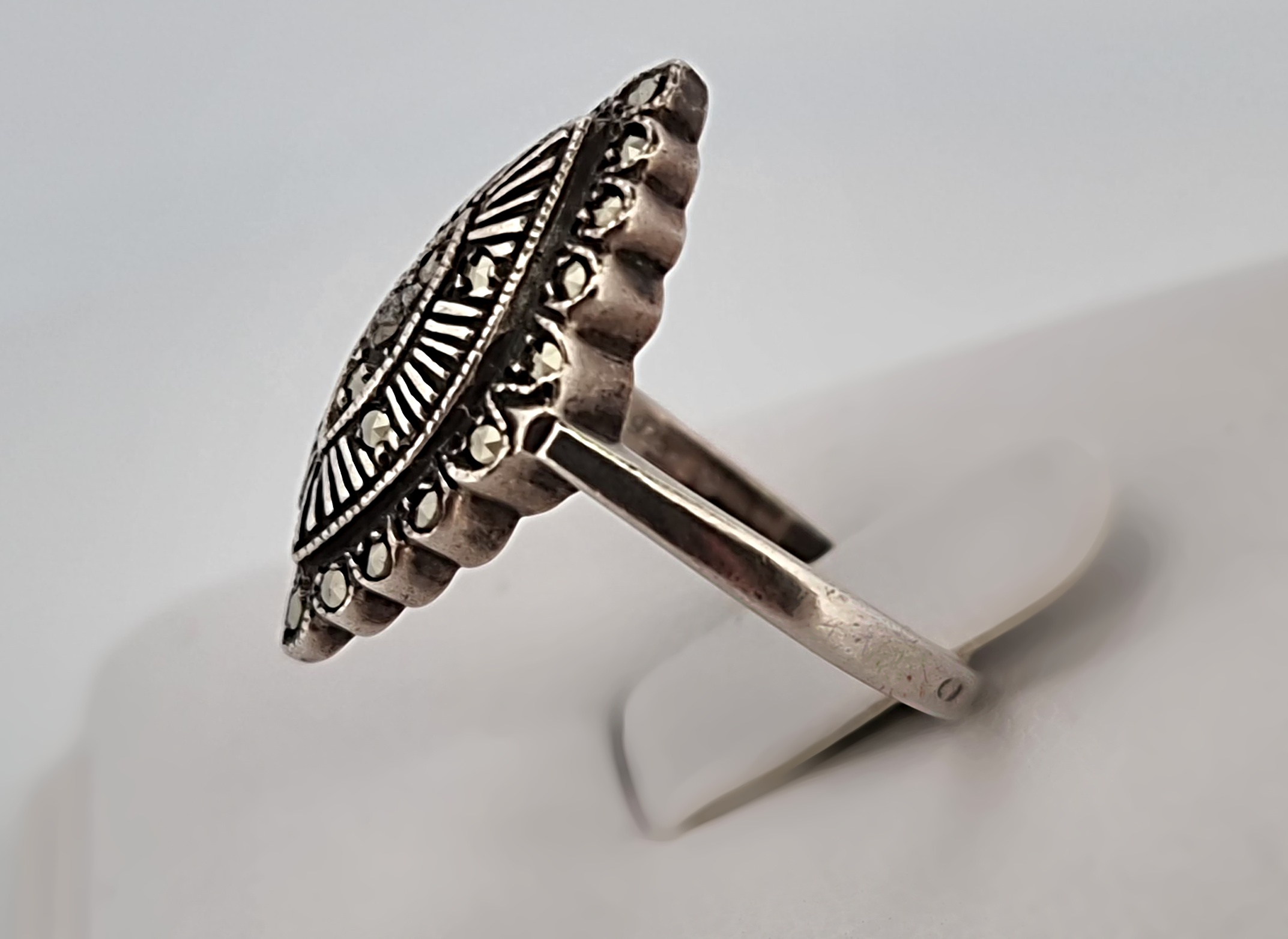 Popis: Secesní stříbrný prsten s markazity.