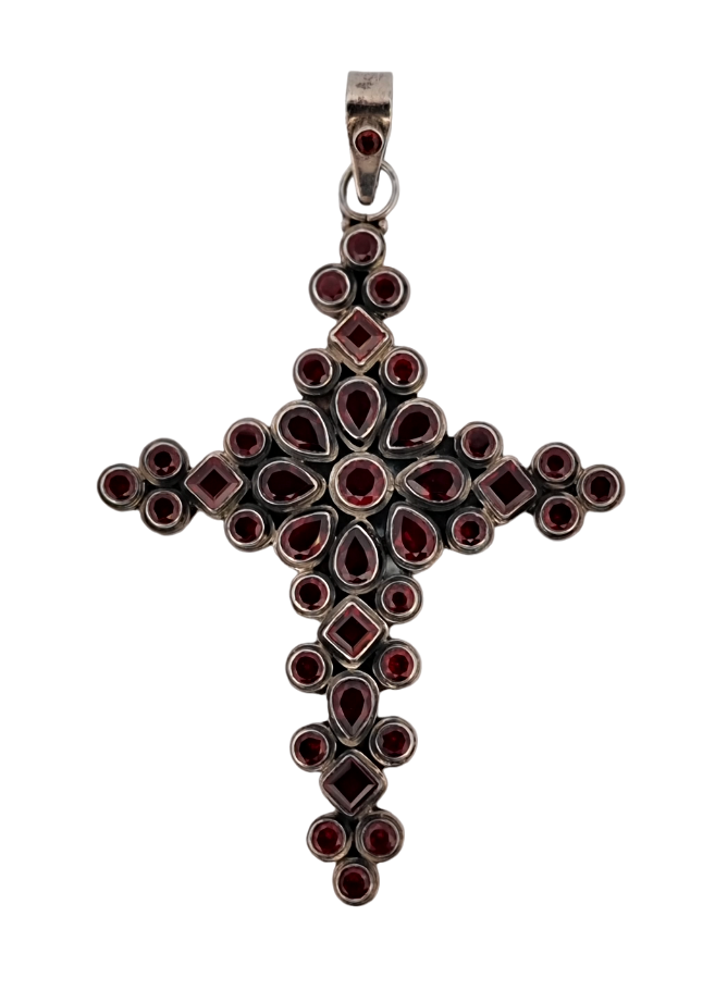 Stříbrný závěs s imitací lapis lazuli (pravděpodobně sklo nebo galalit), Ag btto 12,40g, 800/1000, Střední Evropa, počátek 20. let 20. století, atest puncovního úřadu; délka 6,5 cm, šířka 4,2 cm