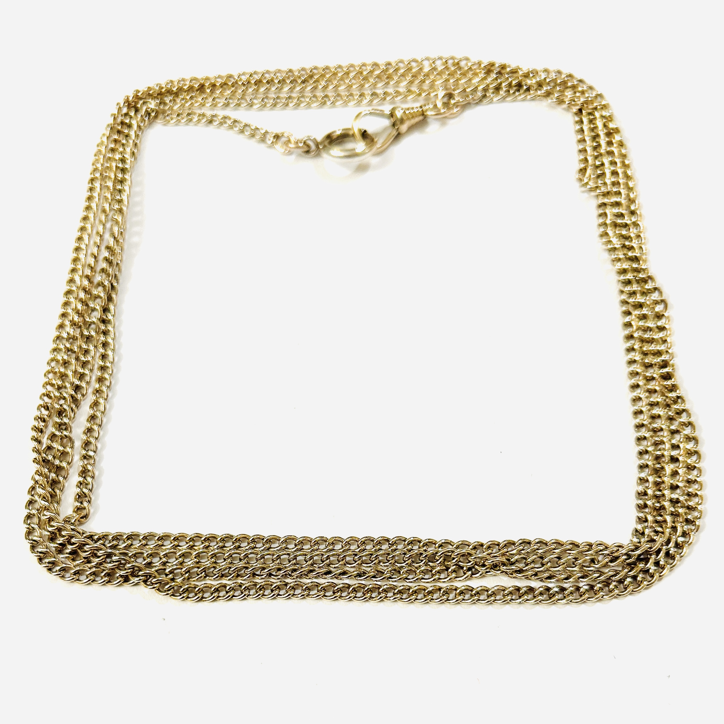 Starožitný dlouhý řetízek tradiční vazby \“pancr\“, původně určeno k dámským kapesním hodinkám (jeptiškám), lze však variabilně využít či obtočit. Solidní vídeňská zlatnická práce z poslední třetiny 19. století.