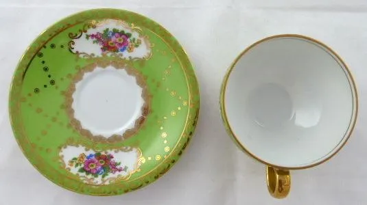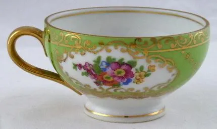 Světle zelený moka šálek s květinami a zlacením – Victoria