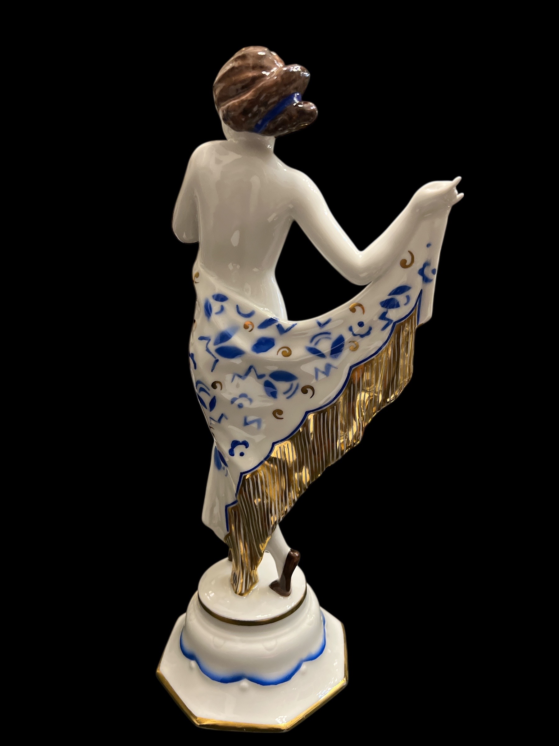 Tančící dívka Schlaggenwald – Slavkov, porcelán, Art Deco, výška 29 cm.