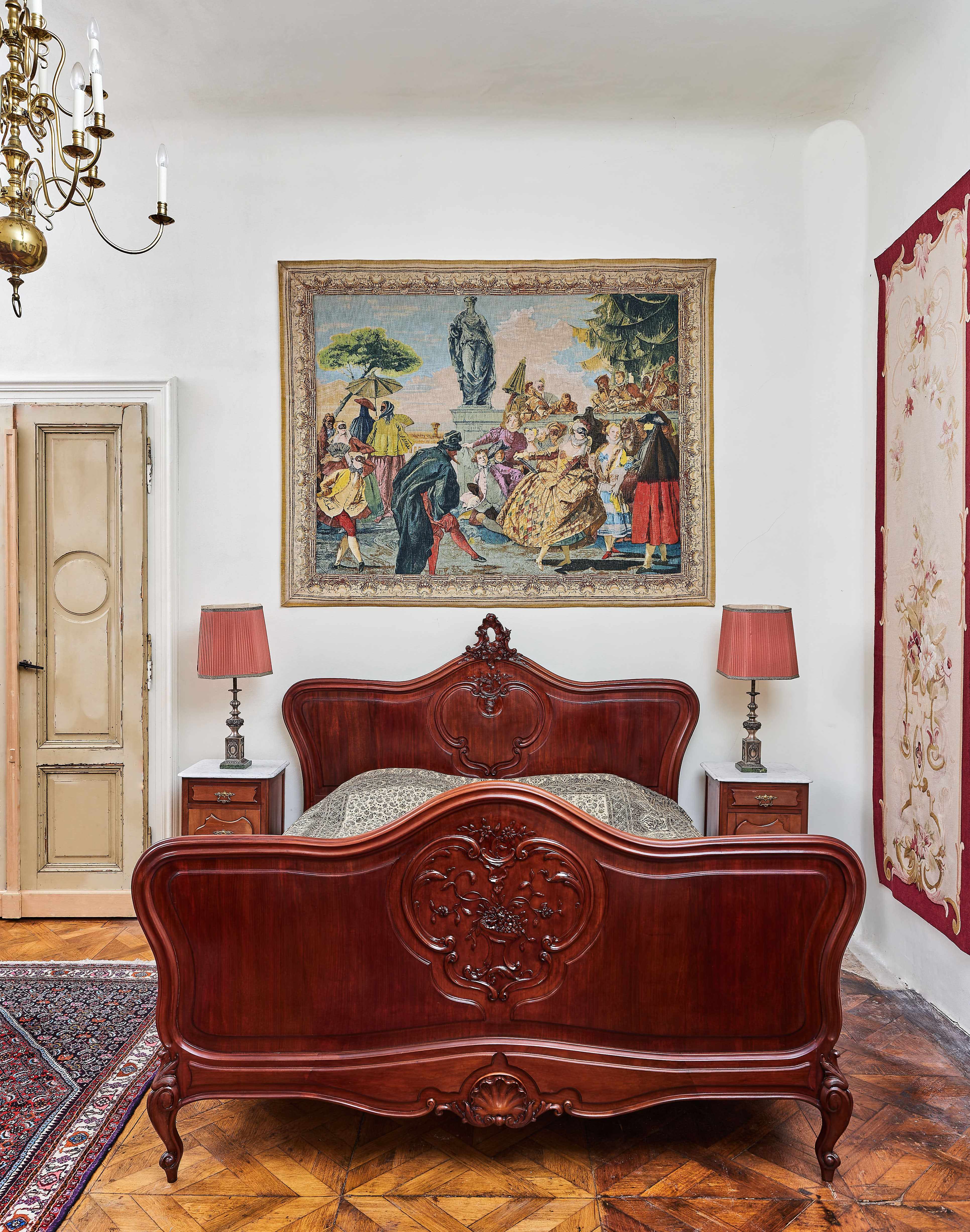 Tapiserie působí jako výrazný dekorační prvek – skvěle vynikne v historickém interiéru, zámeckém apartmá či stylové ložnici, kde dotváří atmosféru luxusu, vkusu a kulturní kontinuity.