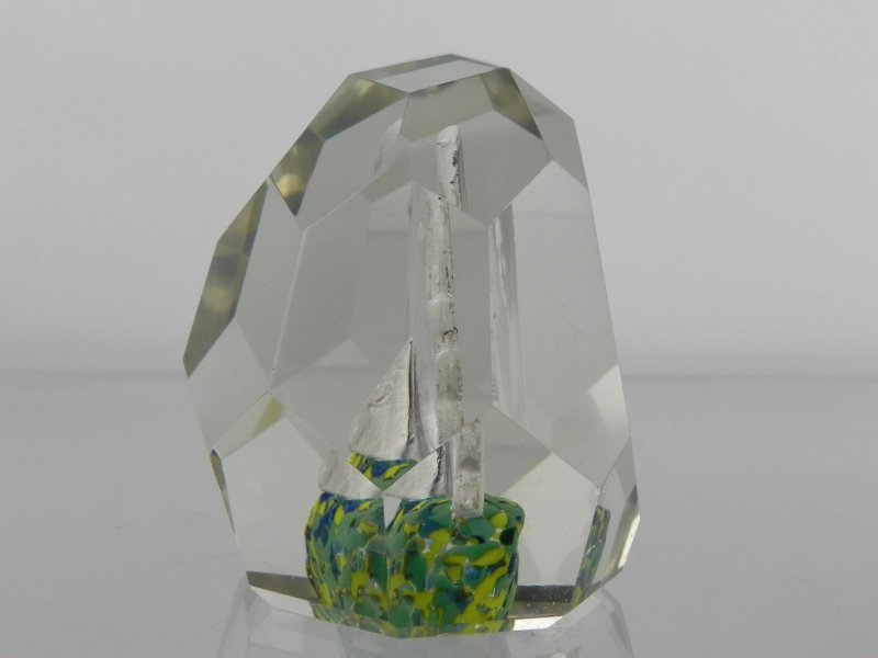 Skleněné těžítko s fotem zěny, kolem roku 1920, stav: nepoškozeno; rozměry: 10 x 9 x 9 cm