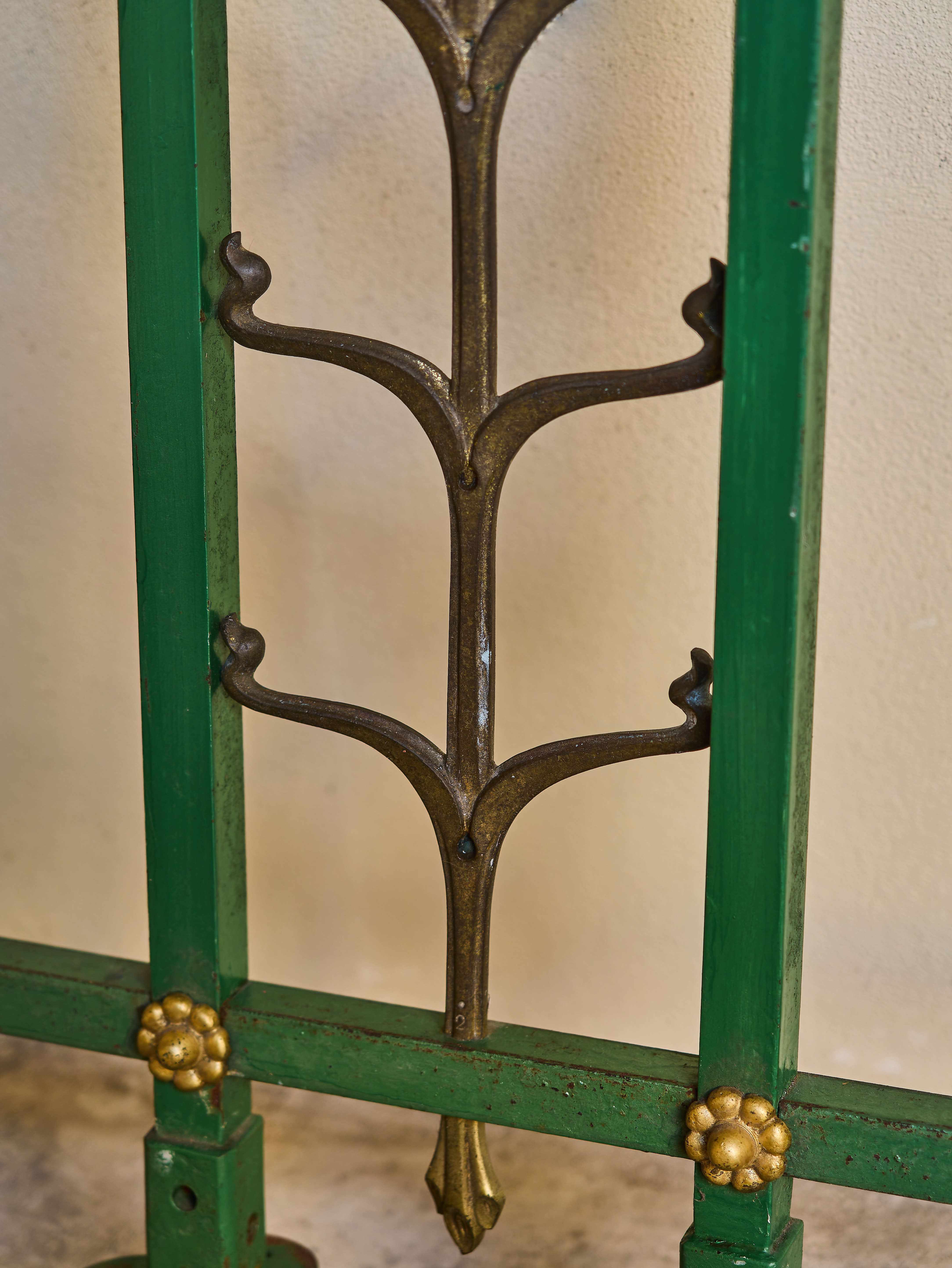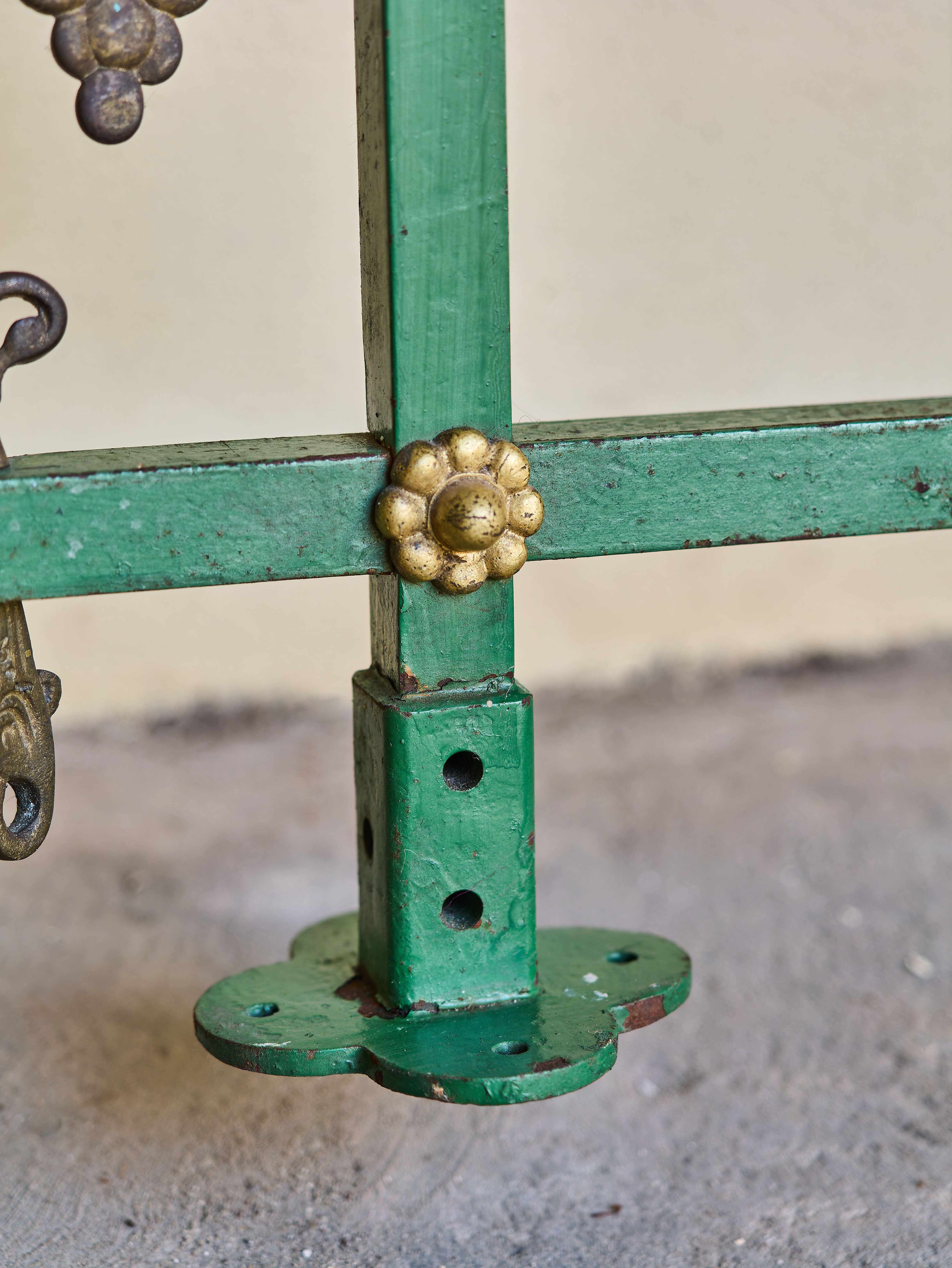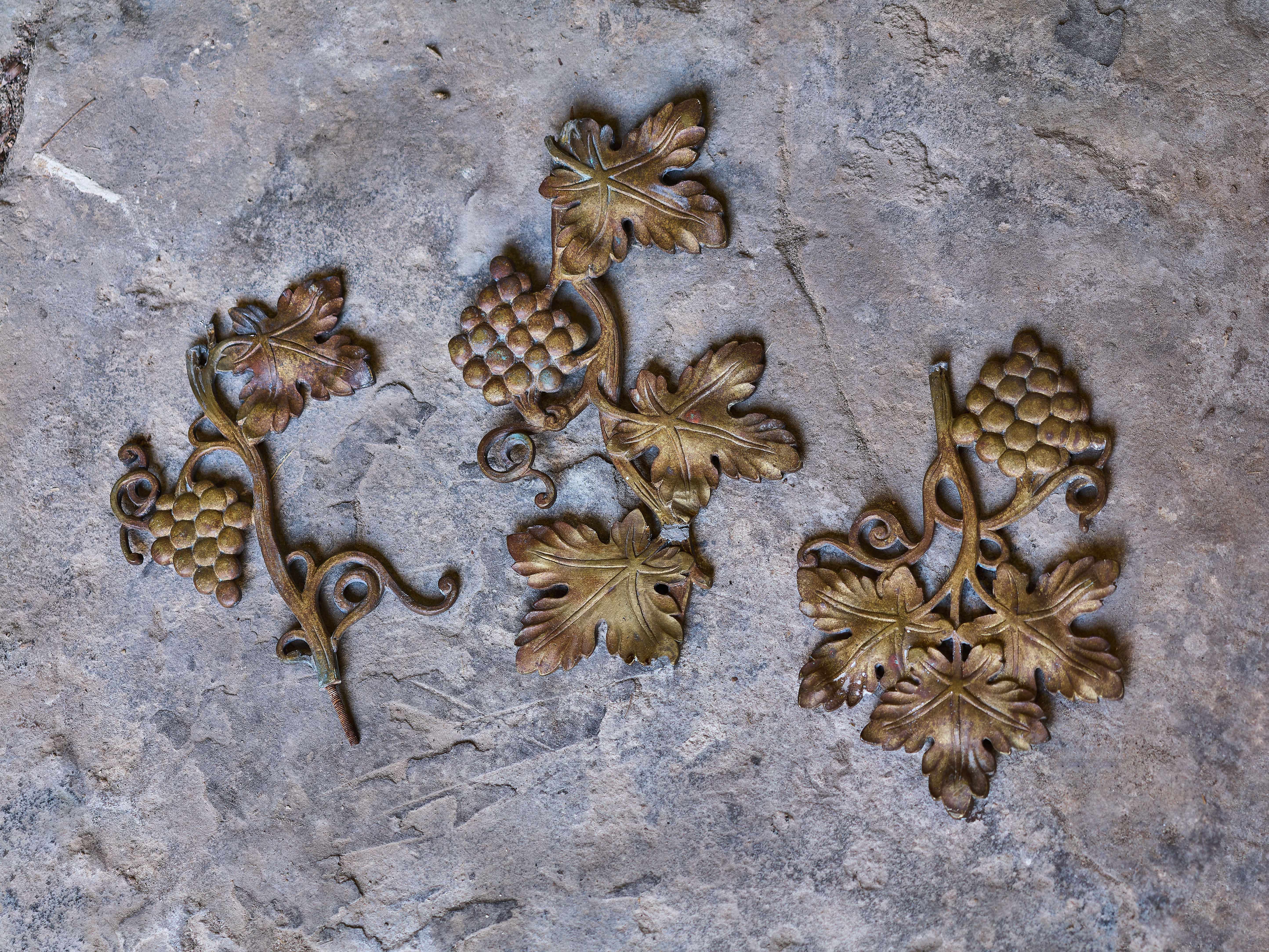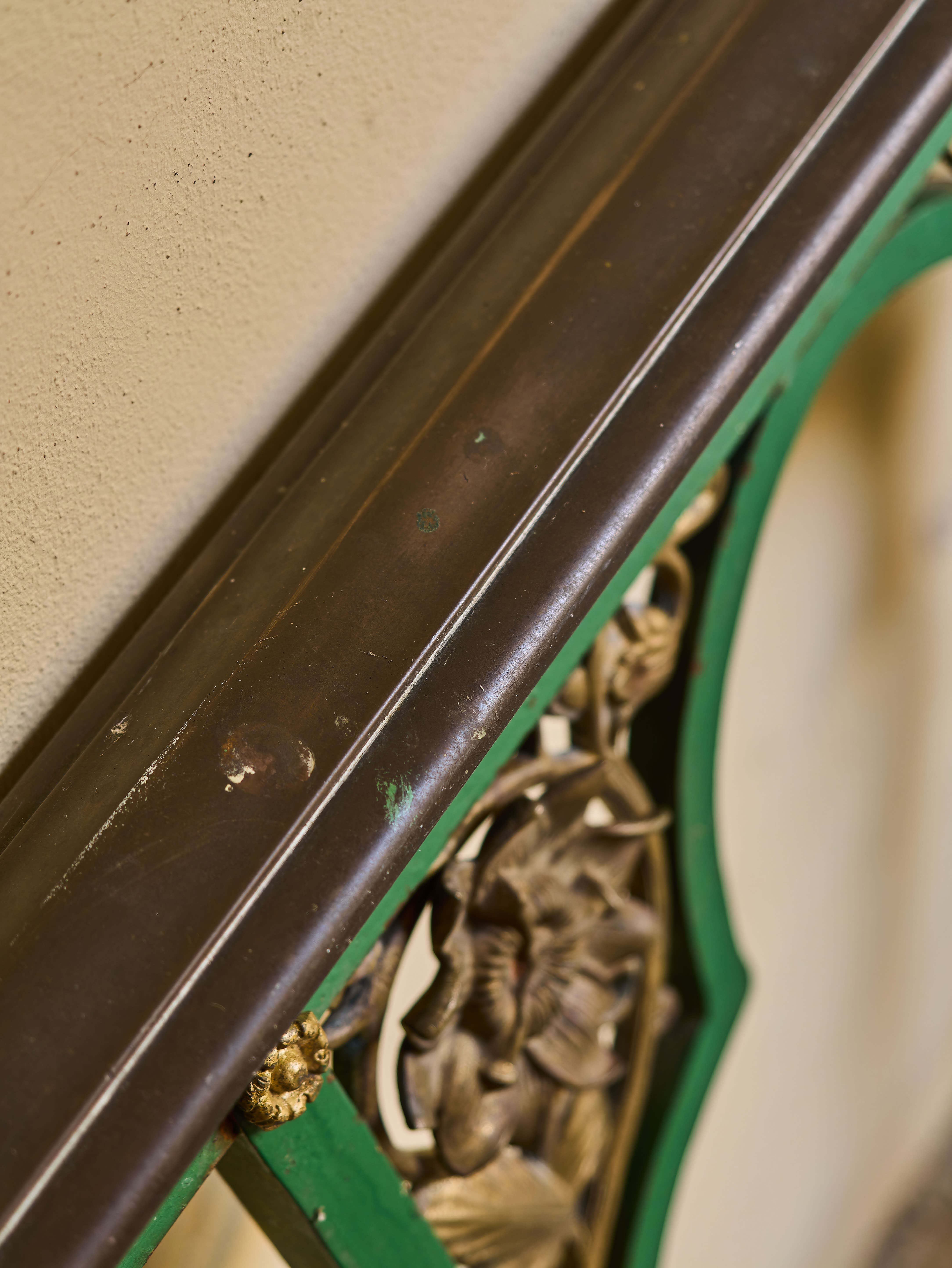 Konstrukce je pevná, celkově robustní a s typickou váhou masivního kovu. Na některých částech je patrná starší zelená povrchová úprava. Součástí jsou i tři samostatné bronzové dekorační prvky s motivem révy, které lze vrátit na původní místa nebo využít dle potřeby.