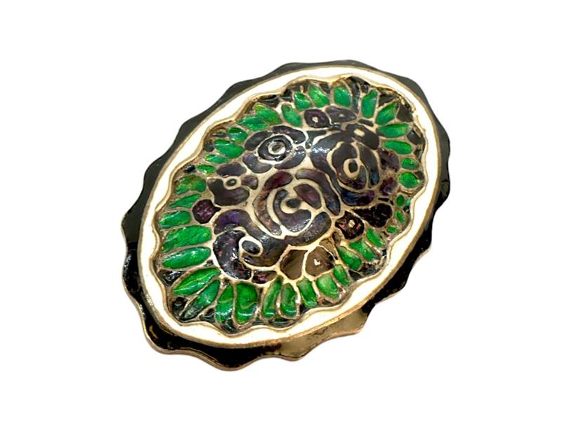 Secesní stříbrná brož zdobená gilošovaným emailem,