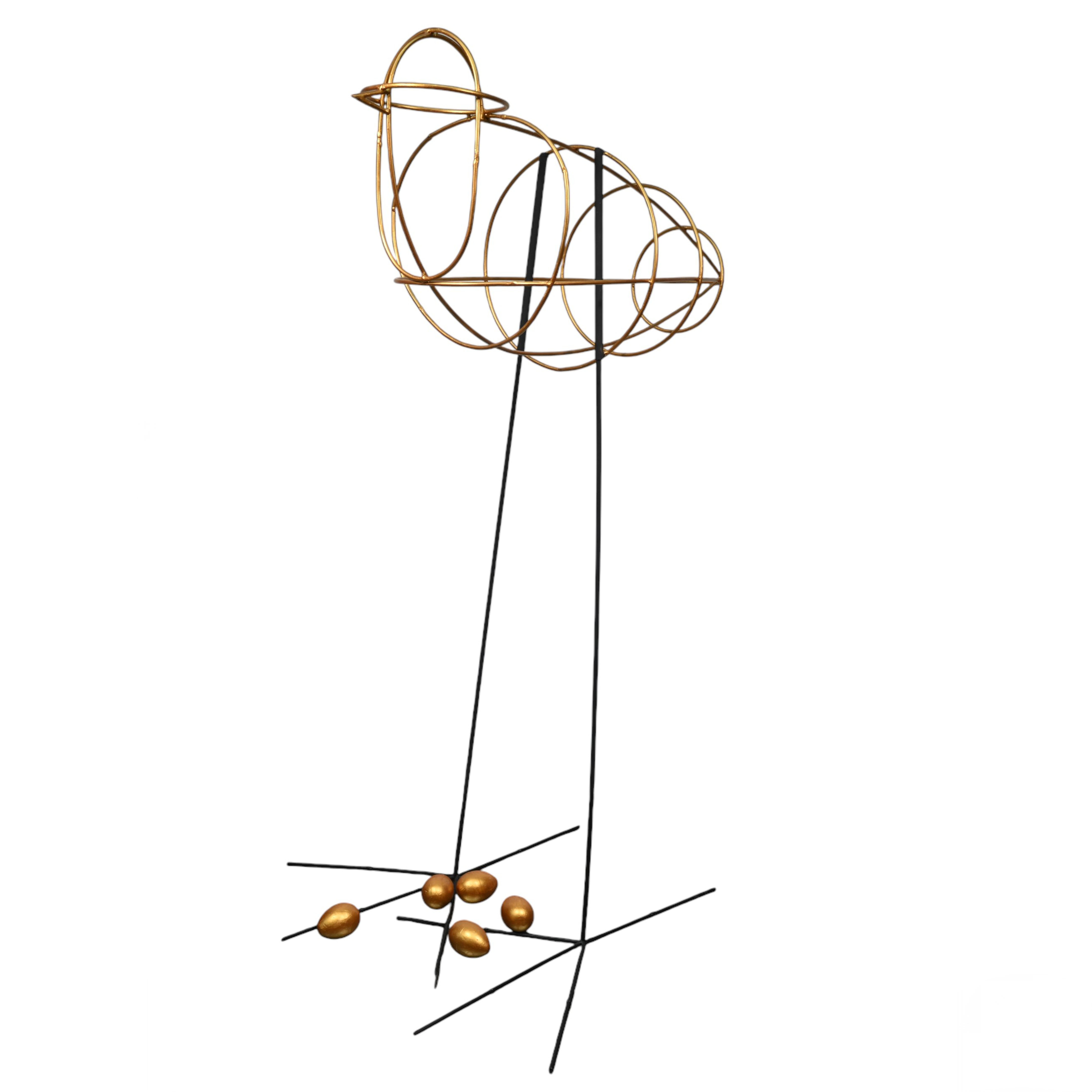 Materiál: kovová konstrukce, zlacené vejce – polystyren Rozměry: výška 175,5 cm, šířka 42 cm, hloubka 116 cm Značení: nesignováno Stav: výborný