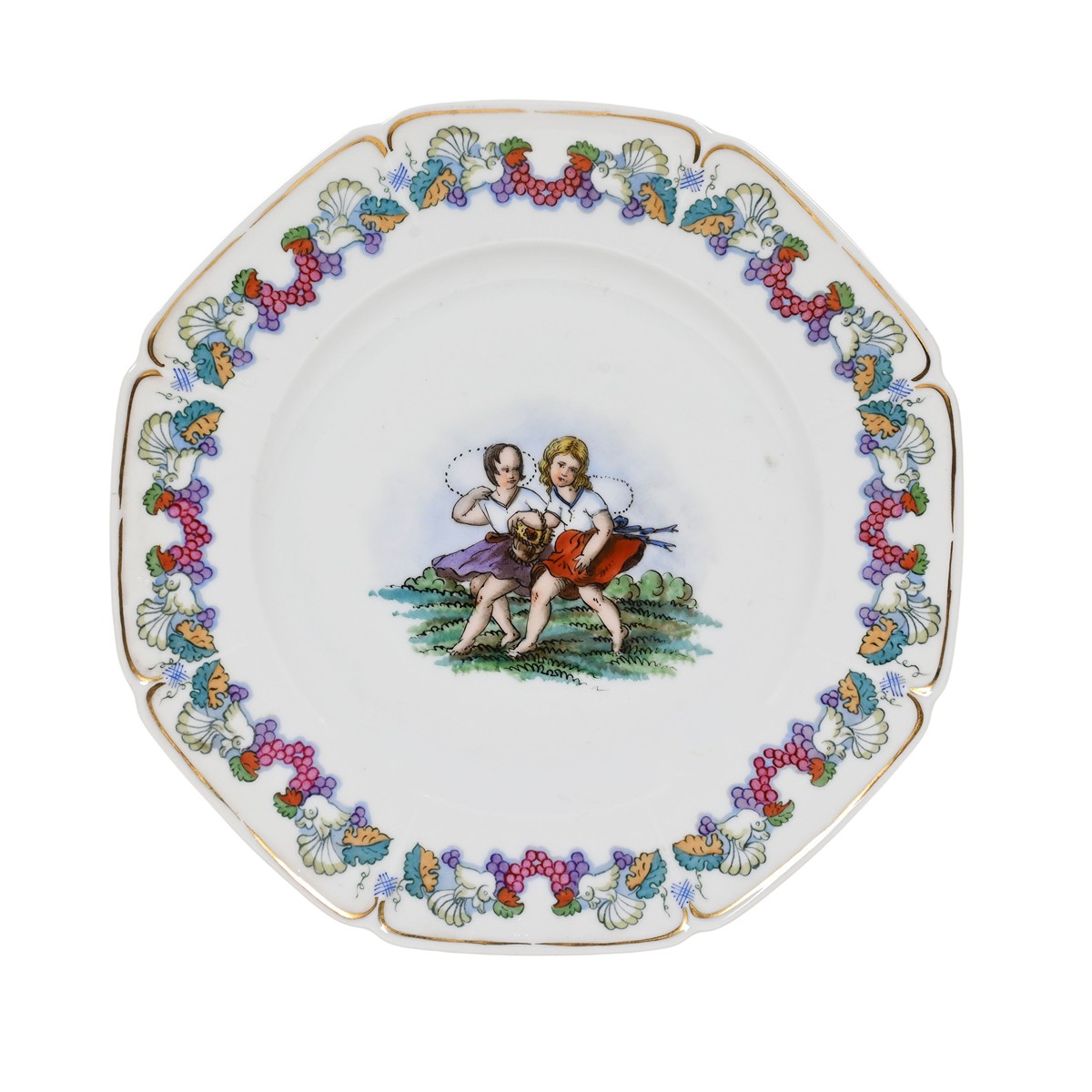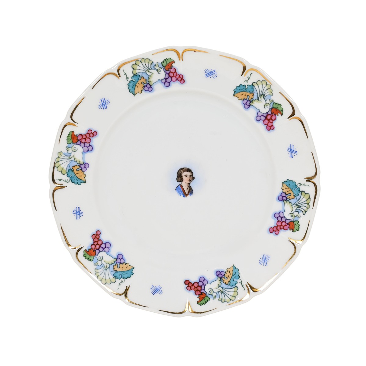 Materiál: porcelán, malováno (7 ks) Rozměry: průměr velkého talíře 23 cm, malého talíře 17,2 cm Značení: ano Stav: výborný