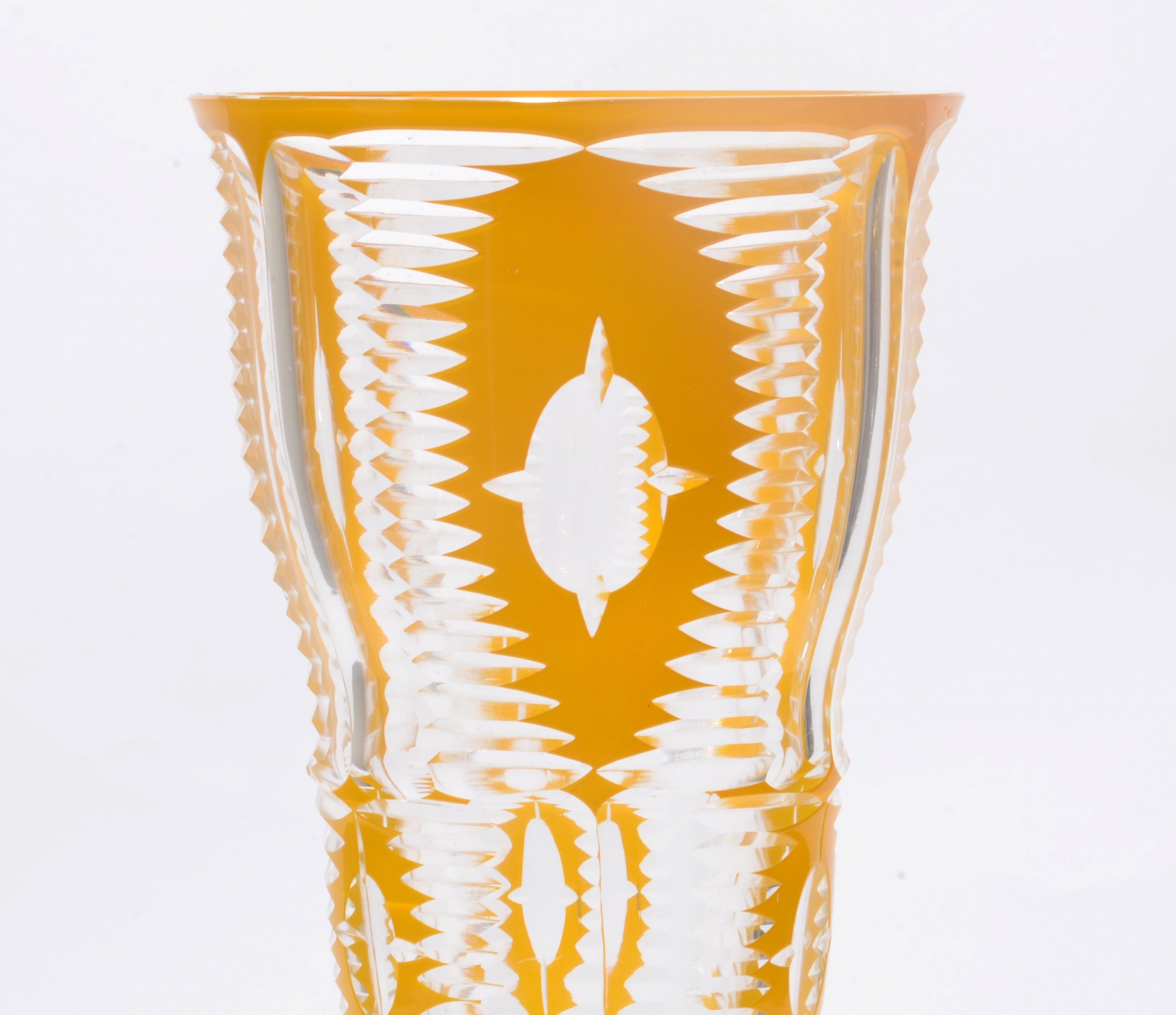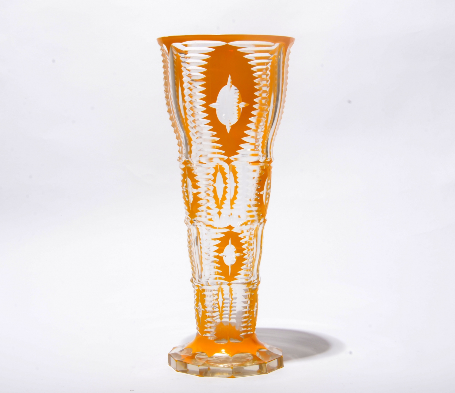 Váza ve stylu Art-deca, vrstvené probrušované sklo, Čechy okolo r.1930, výška 30 cm.