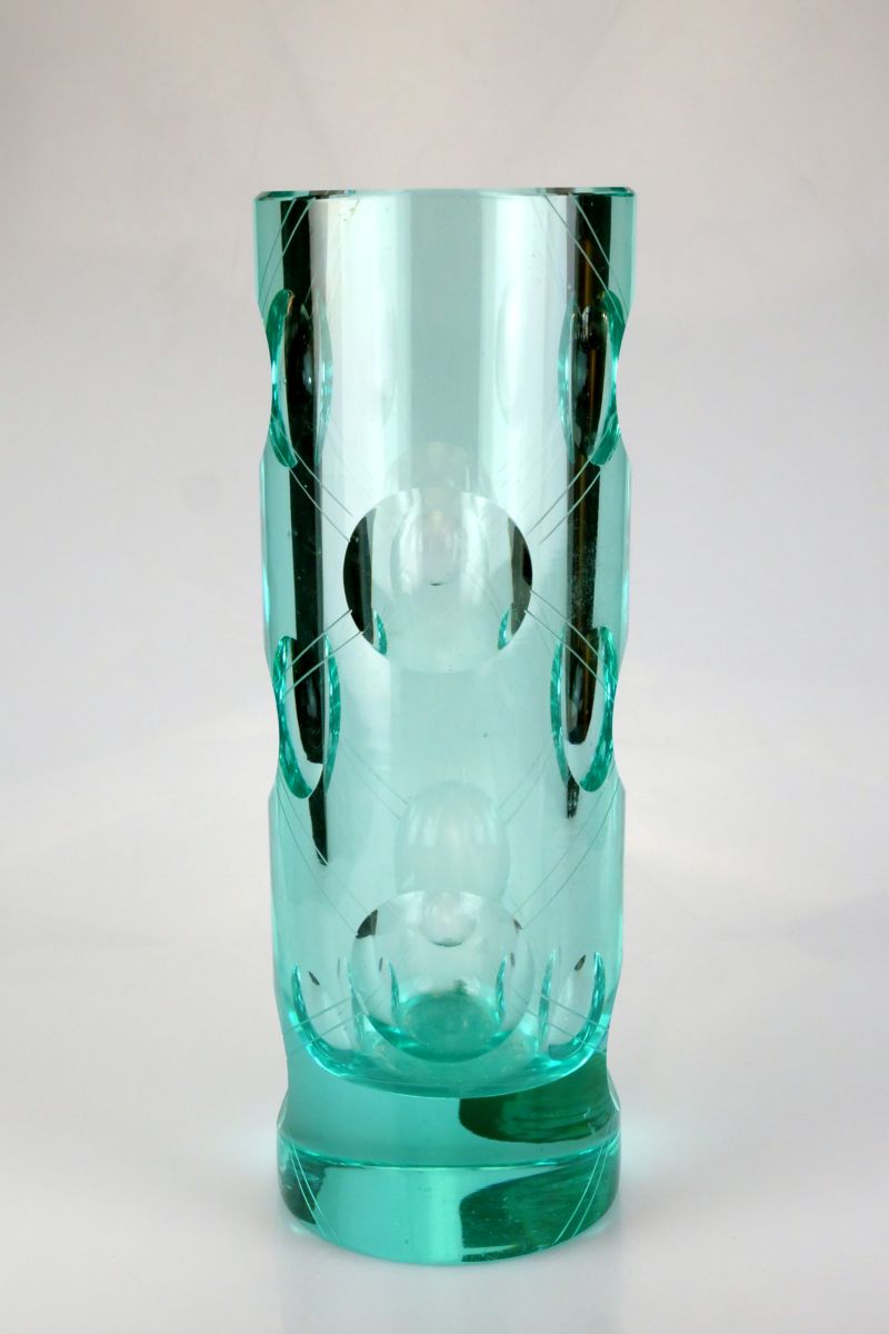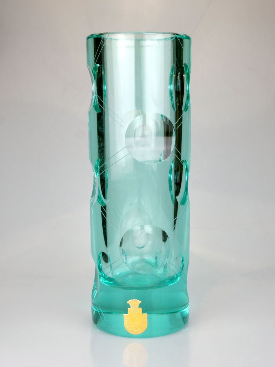 Váza retro design Milana Meteláka, sklárna Nový Svět Harrachov, kolem roku 1980, výška 25 cm