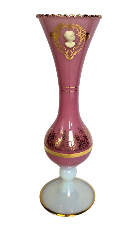 Secesní skleněná váza malovaná emailem. Rakousko – Uherská provenience kolem roku 1910.