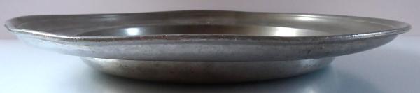 Cínový talíř kulatého tvaru s profilovaným okrajem. Horní plochý lem s rytými monogramy C. L. , SAH, E. H. . Horní zakulacený okraj. Střed hladký, nezdobený. Značený zespodu – Stephan Plazer Probzin Salzburg 1773, a Probzin Salzburg písmena ST. a P. . Joseph Stephan Plazer (pocházející z Karlových Varů ), činný v Salzburgu (1773 – 1791), kde převzal dílnu po Joseph Anton Lechner. Salzburg, rok 1773. Průměr 29 cm.