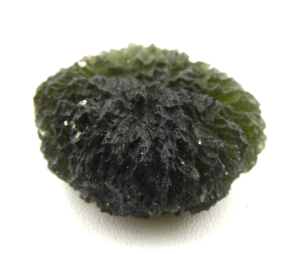 Přírodní vltavín o rozměru 32 mm x 29 mm x 16 mm. Hmotnost vltavínu 15,64 g. Rozježené skulptace, nadprůměrné váhy. Naleziště Chlum nad Malší u Ločenic. Vltavín, též zvaný moldavit, drahokam vzniklý při dopadu meteoritu.