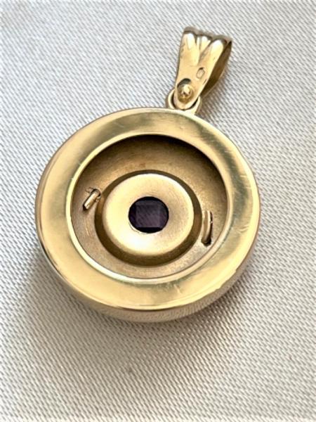 Zlatý přívěšek ze žlutého zlata v ryzosti 14 karátů AU 585/000 s fialovým synt. ametystem. Váha brutto 4,54 gramů