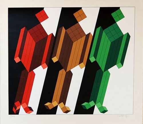 Obraz od Victora Vasarelyho (1906 – 1997), serigrafie – umělecký sítotisk, rok 1988, signováno PD vpravo dole, číslováno 131/250; rozměr 52 x 60 cm, s rámem 65 x 73 cm, rámováno