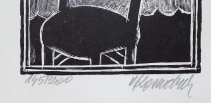 Dřevoryt na papíře 11 x 7,5 cm. Signováno vpravo dole. Číslo listu 145 / 200. Rok 1979. Stav výborný.
