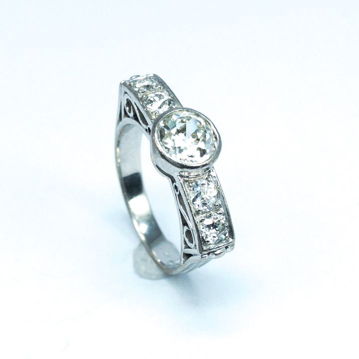 osazený přírodním diamanty starého briliantového brusu 1,73 ct