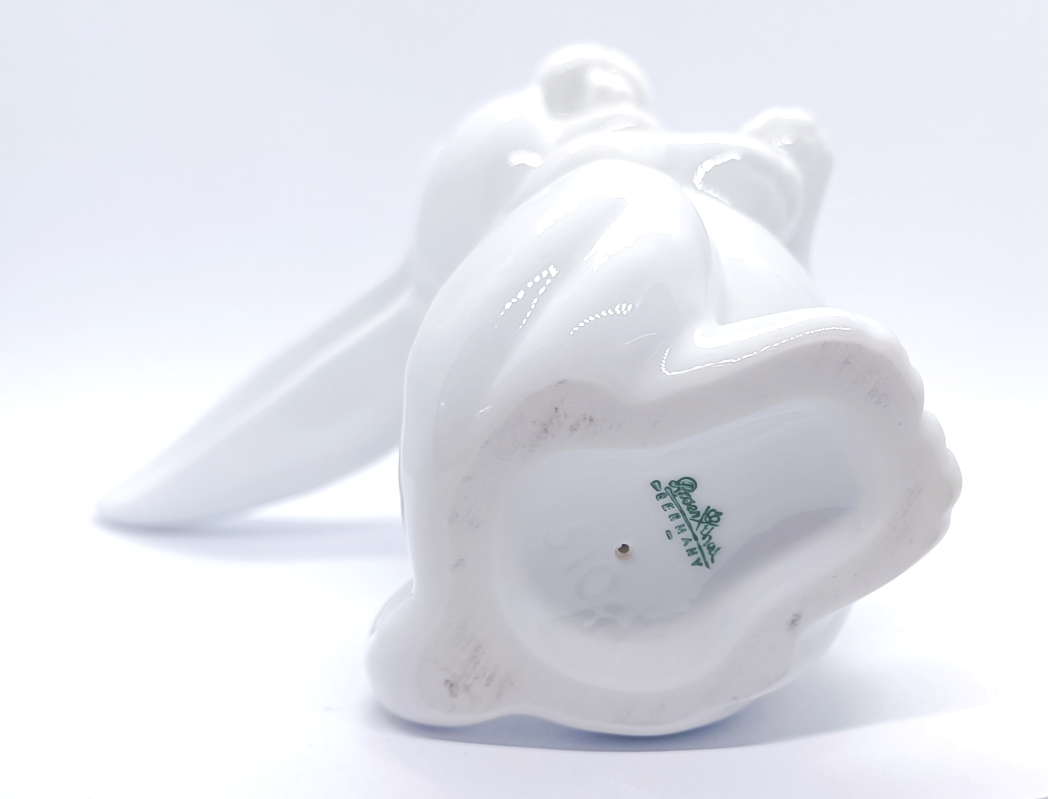 Porcelánová figurka vysmátého králíka, značeno Rosenthal, Německo, 50. léta 20. století; výška 13,5 cm