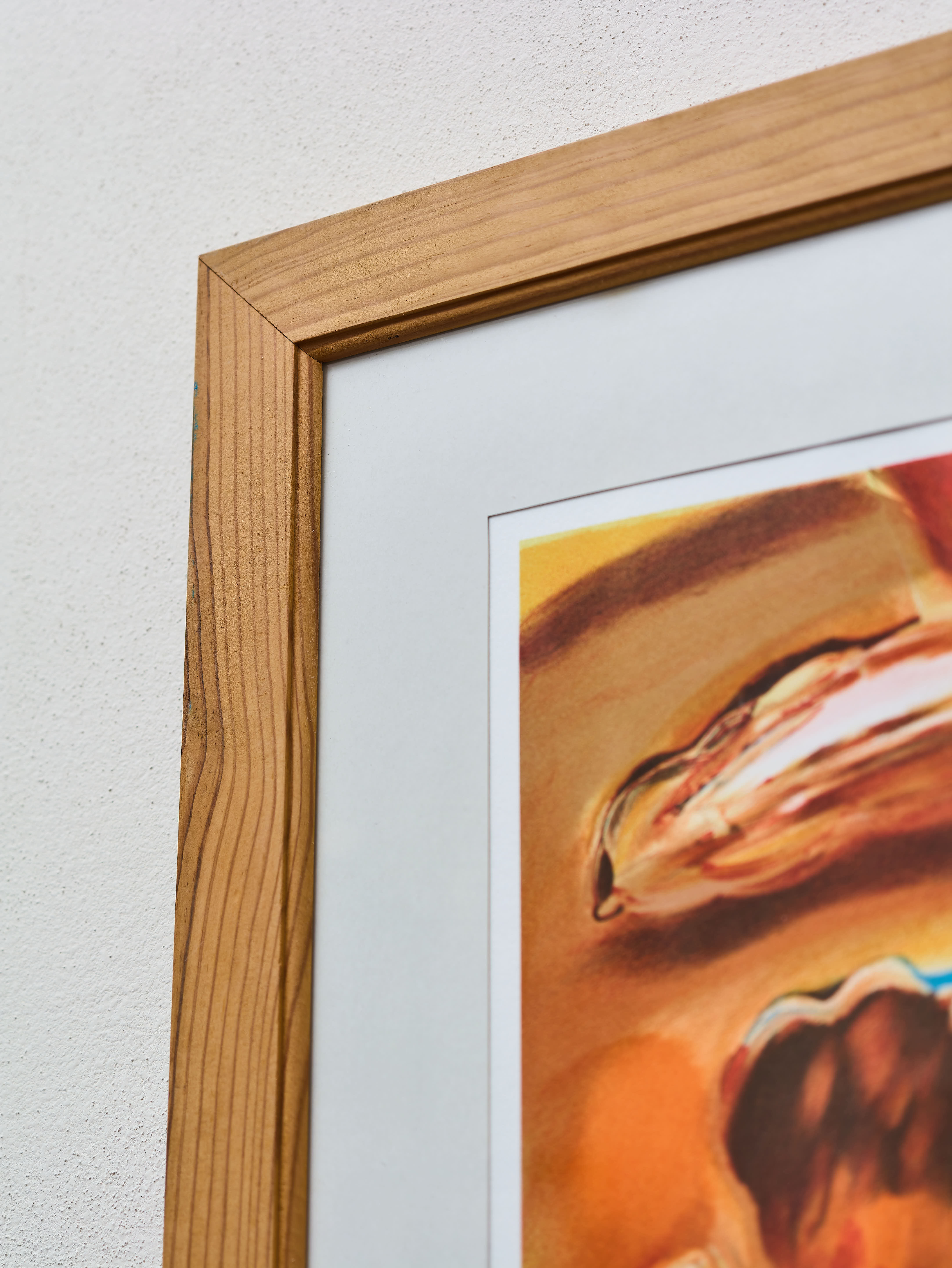 Dílo je adjustováno pod paspartou v dřevěném rámu s ochranným sklem, na zadní straně je uvedeno autorovo jméno.
