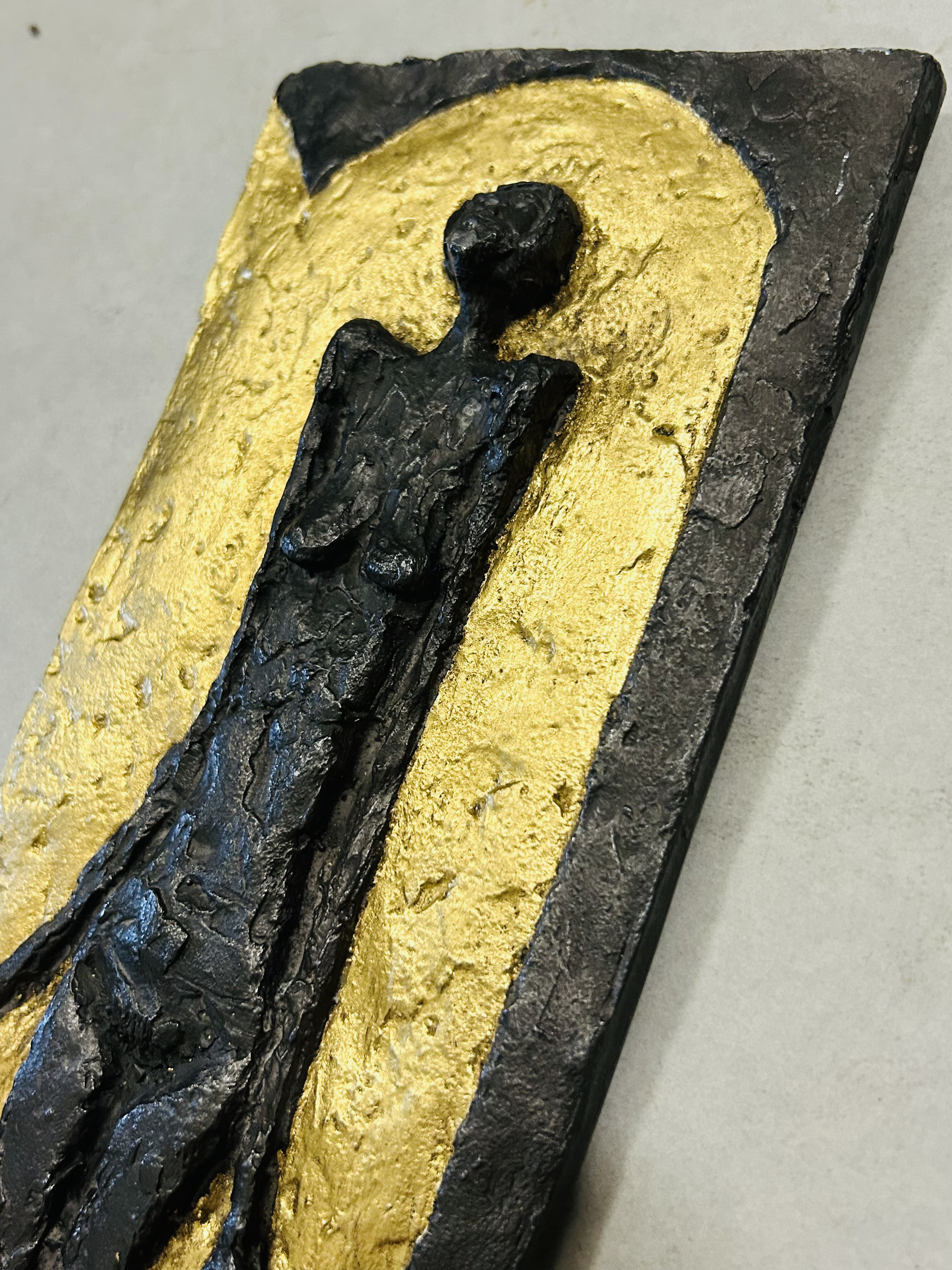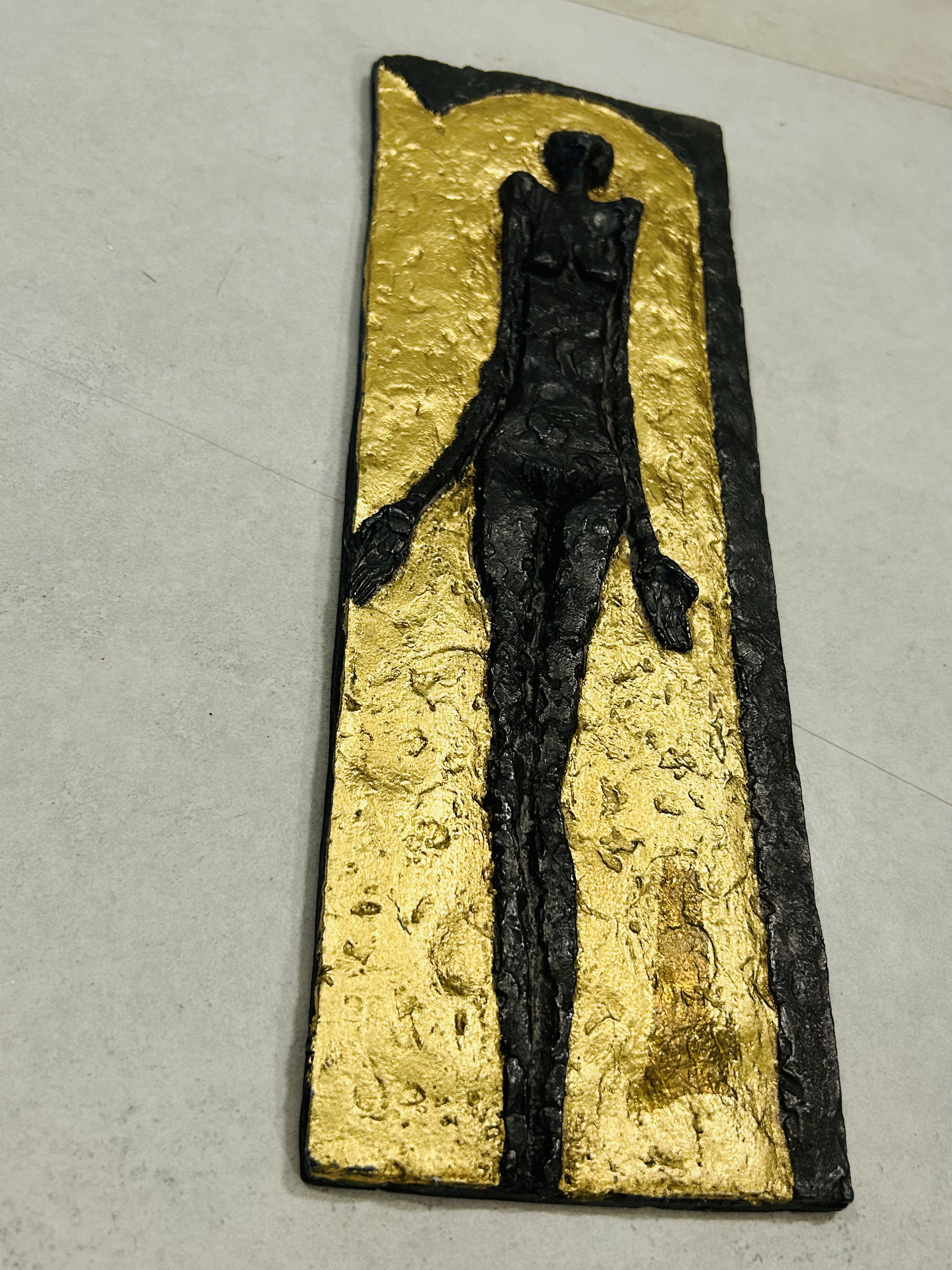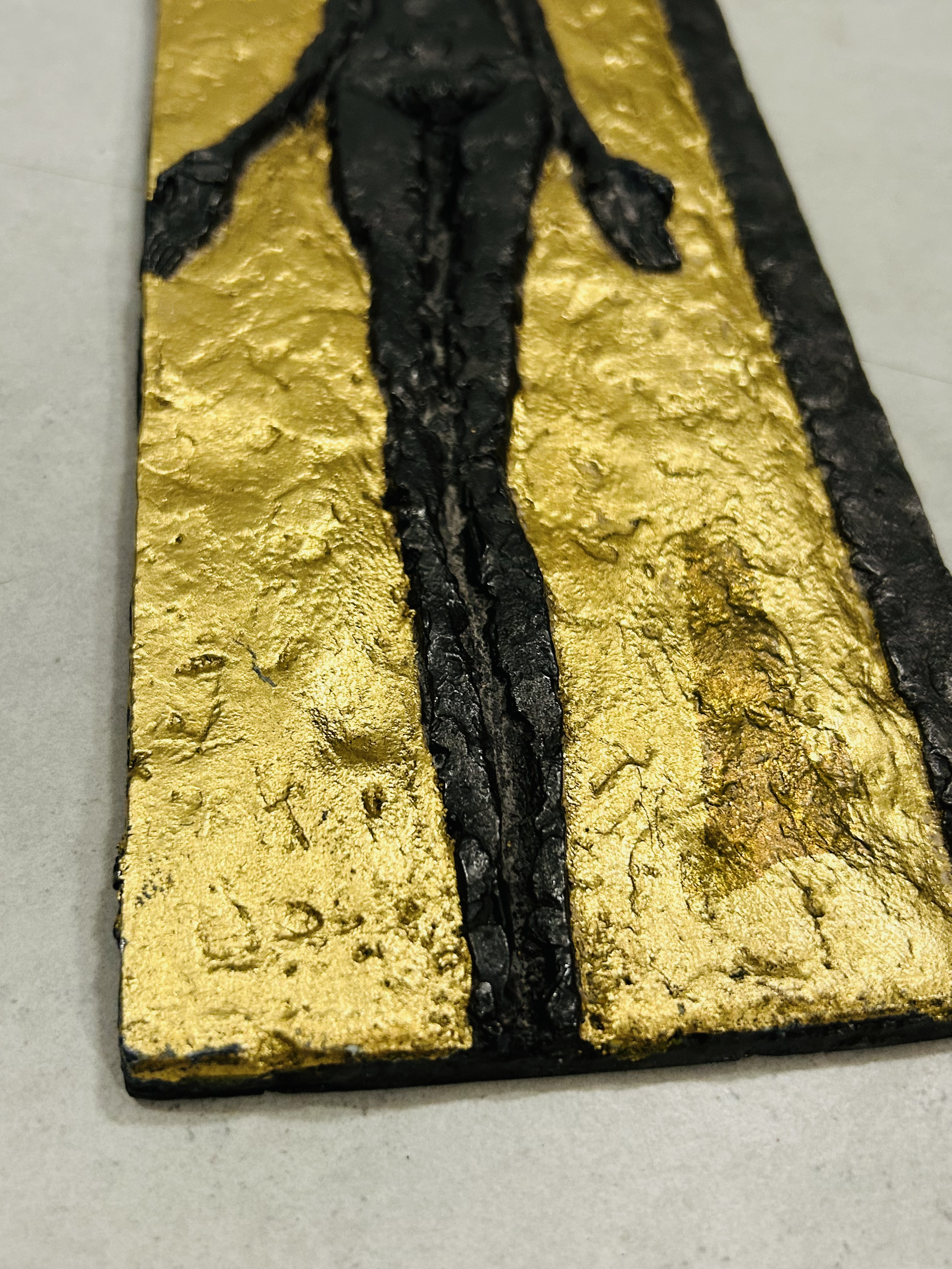 TECHNIKA-RELIÉF. MATERIÁL-CÍN / ZLATO. ROZMĚR-V34..Š12. ZNAČENO-ZADNÍ STRANA. ROK VZNIKU-1976