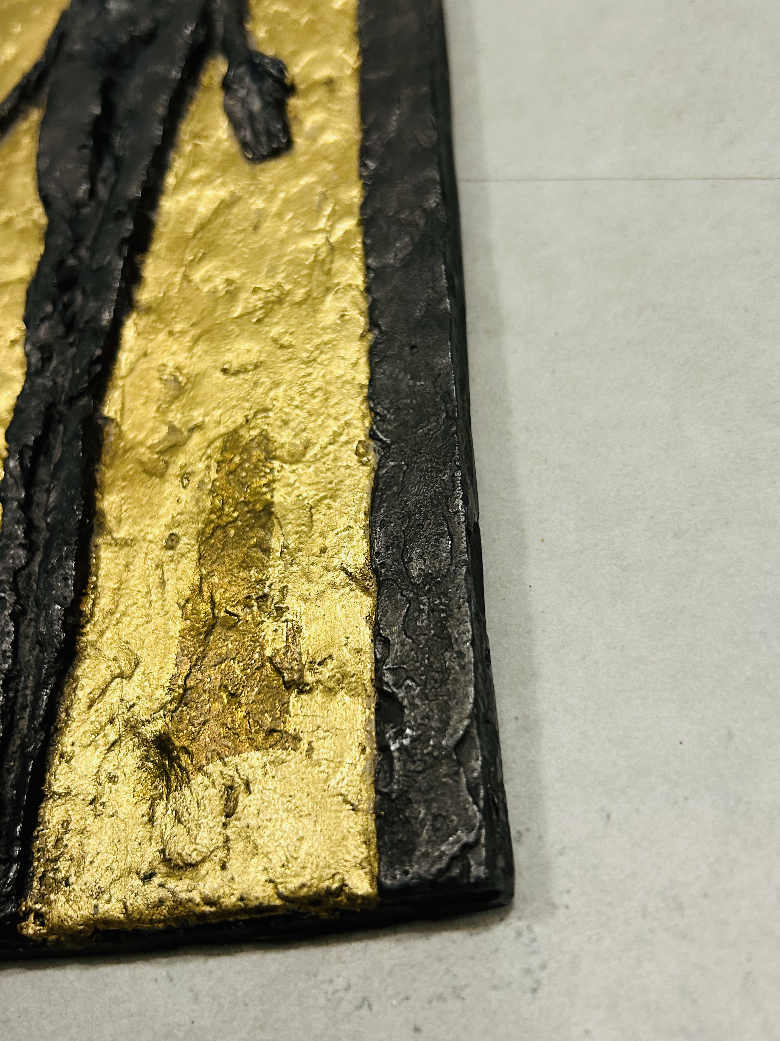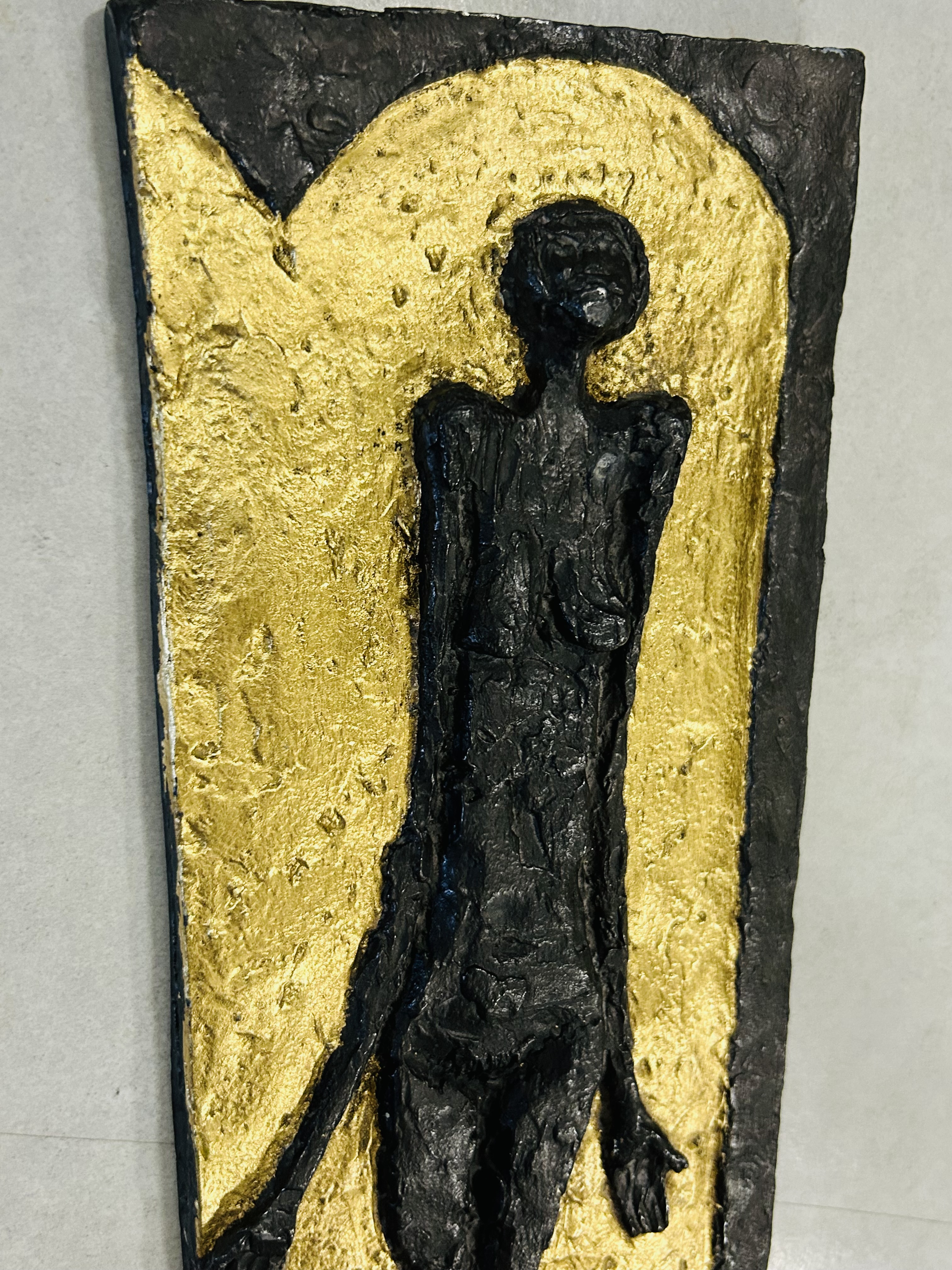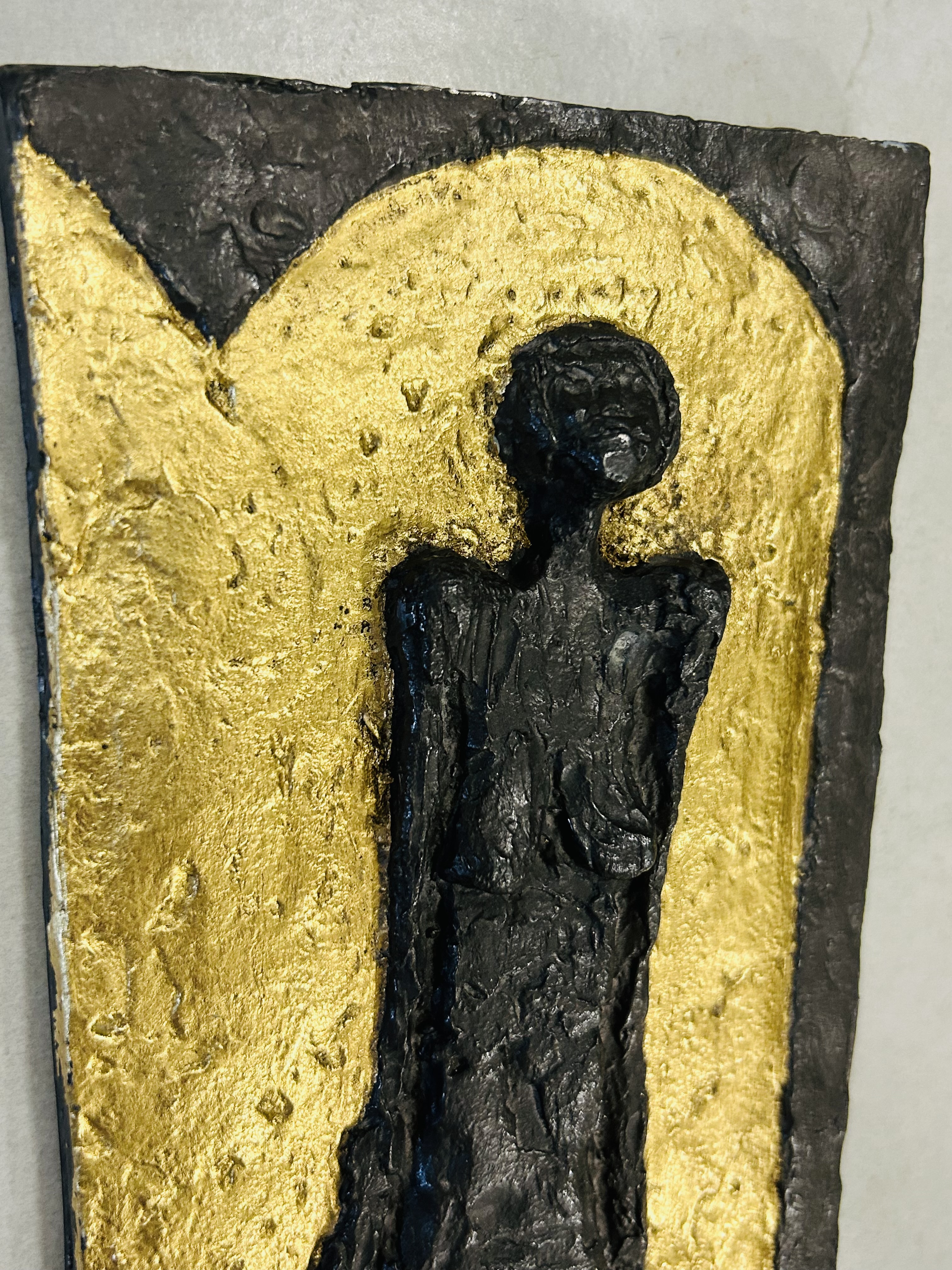 TECHNIKA-RELIÉF. MATERIÁL-CÍN / ZLATO. ROZMĚR-V34..Š12. ZNAČENO-ZADNÍ STRANA. ROK VZNIKU-1976