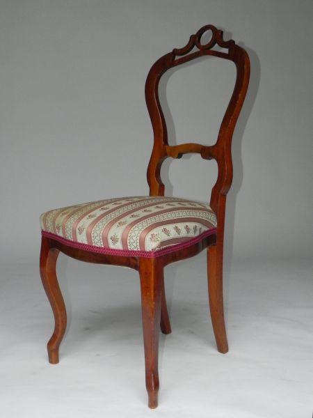 Židle z období biedermeieru, polovina 19. století. Židle je z ořechu, dýhovaný masiv. Restaurováno. Rozměr: 99 x 45 x 45 cm