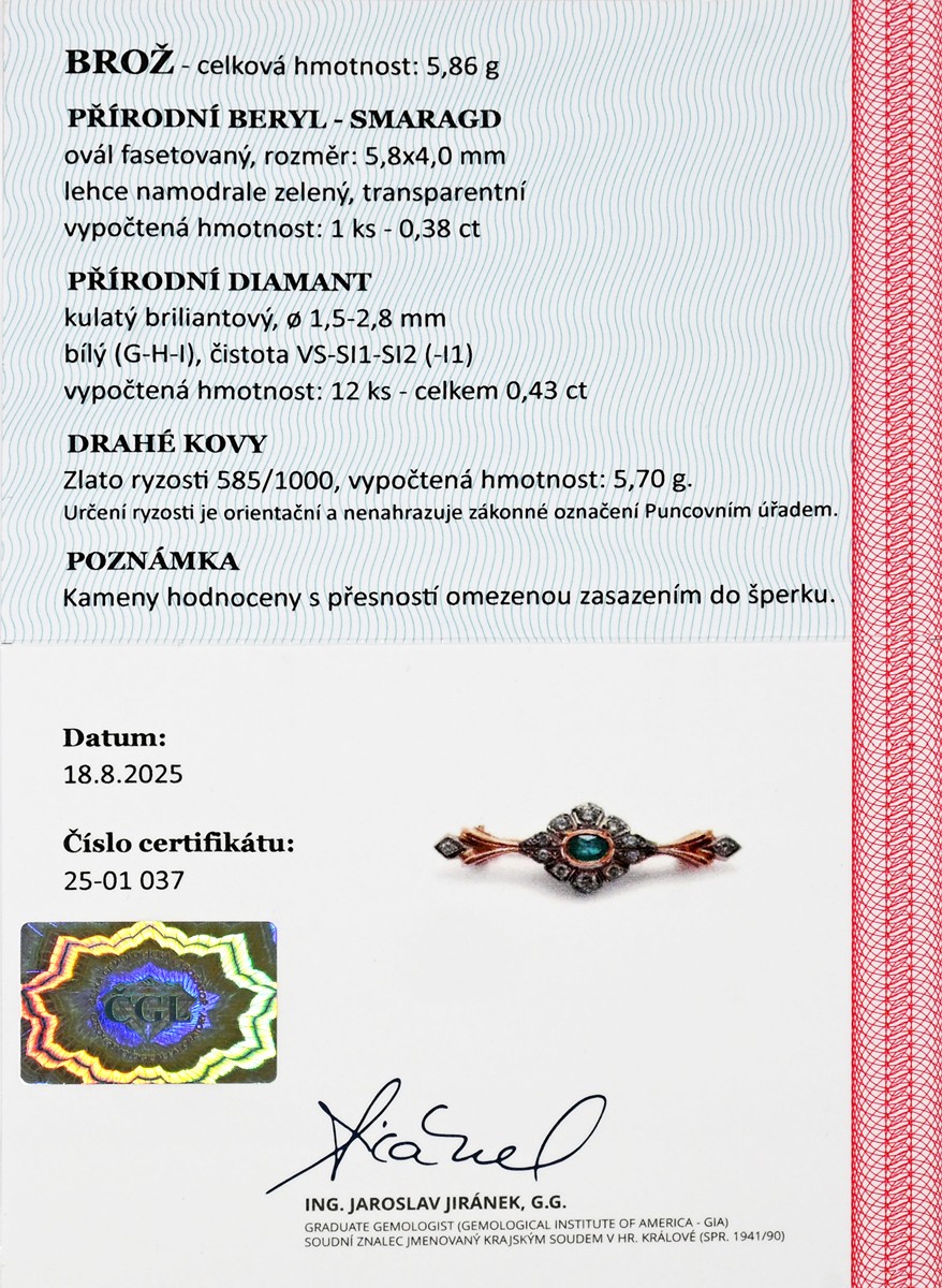 přírodní smaragd 1 ks 0,38 ct, rozměr 5,8×4,0 mm