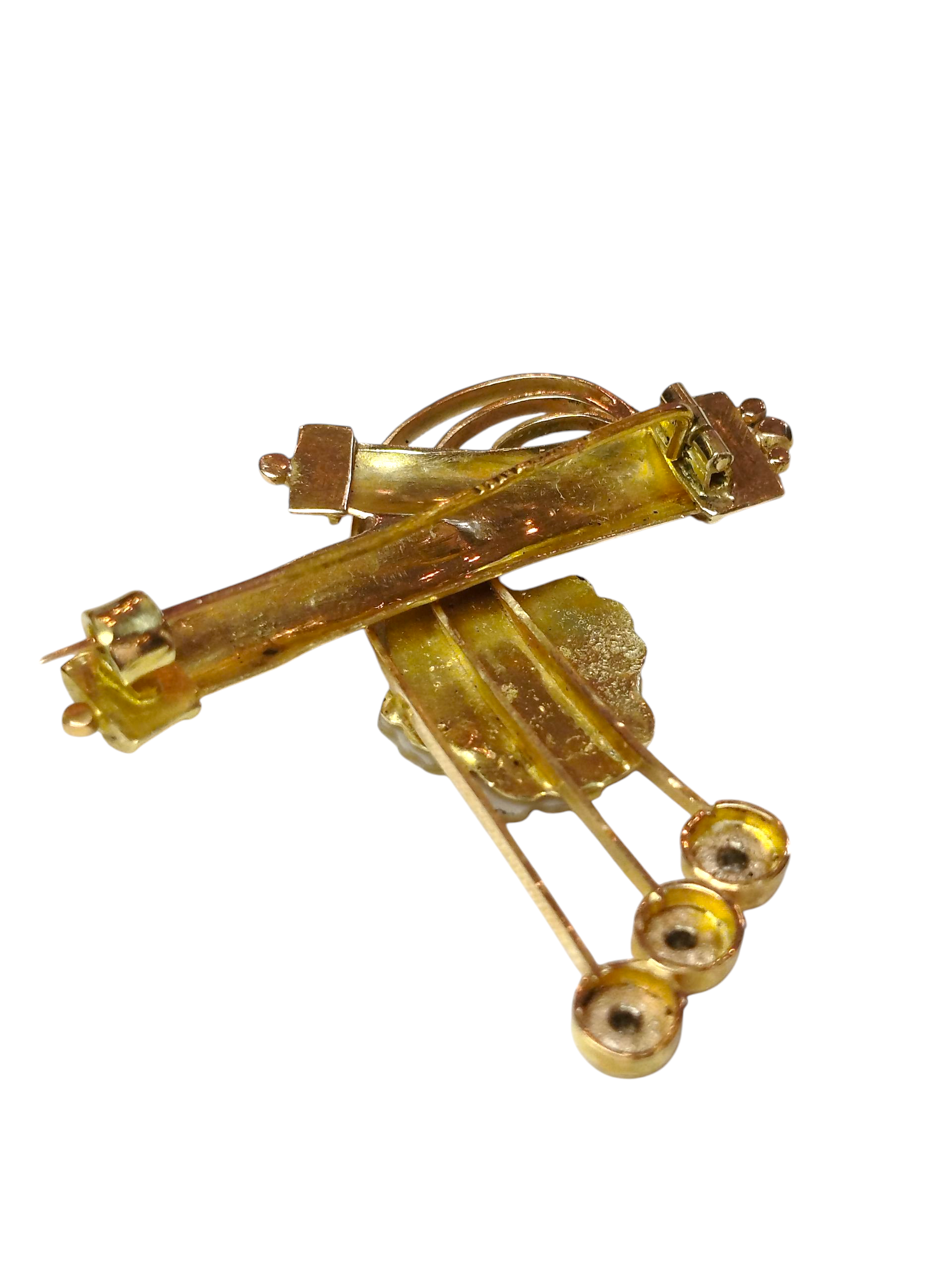 Brož z konce 19.stoletím období historismu, florální motivy, zdobená perletí, smaragdem a diamanty