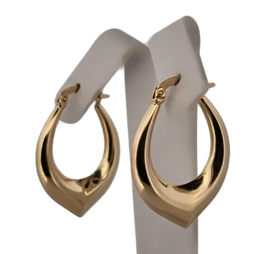 Popis: Zlaté náušnice masivního vzhledu, ve tvaru kapky. Zapínání na francouzský zámek.