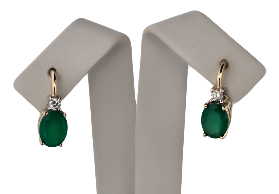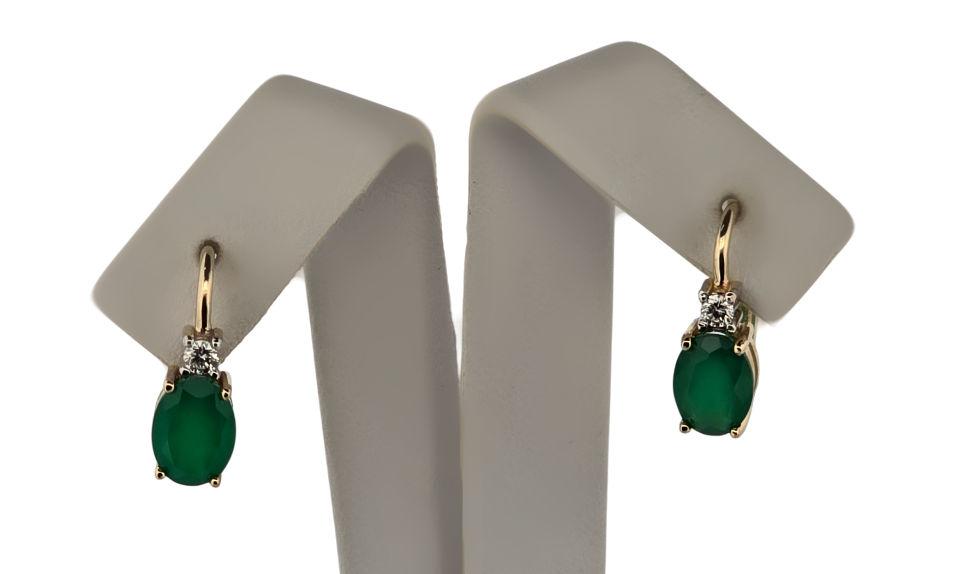 Popis: Zlaté náušnice s přírodními diamanty a překrásně smaragdově zelenými přírodními chryzoprasy. Chryzoprasy jsou velmi dobré kvality o celkové váze cca 2 ct. Dva kusy přírodních diamantů mají briliantový brus, jsou velmi dobré kvality a mají celkovou váhu cca 0,12 ct. Elegantní šperk vhodný pro každou příležitost.