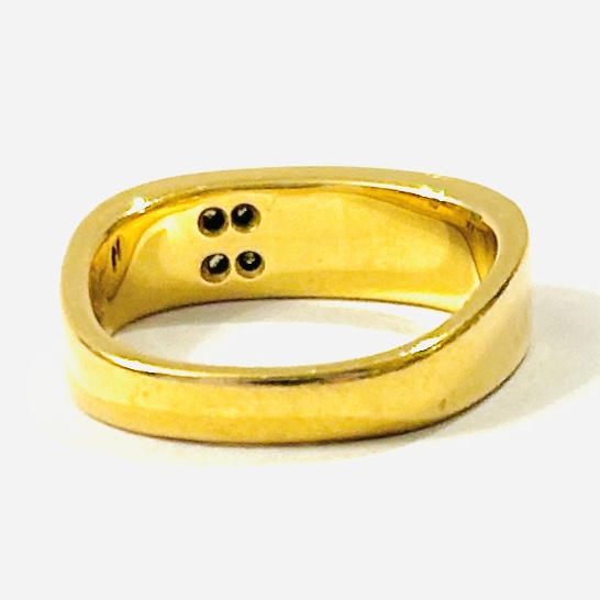 Zhotoveno ze žlutého 18 karátového zlata, tj. o ryzosti 750/1000; nově opatřeno puncem Z-35 (kohout 3), ryzostní číslo, značka \“0.09\“ a značka výrobce zevnitř šíny. Hmotnost 4,32 g, velikost 50,5, šířka hlavice 5 mm. Ve velmi zachovalém stavu, odborně vyčištěno.