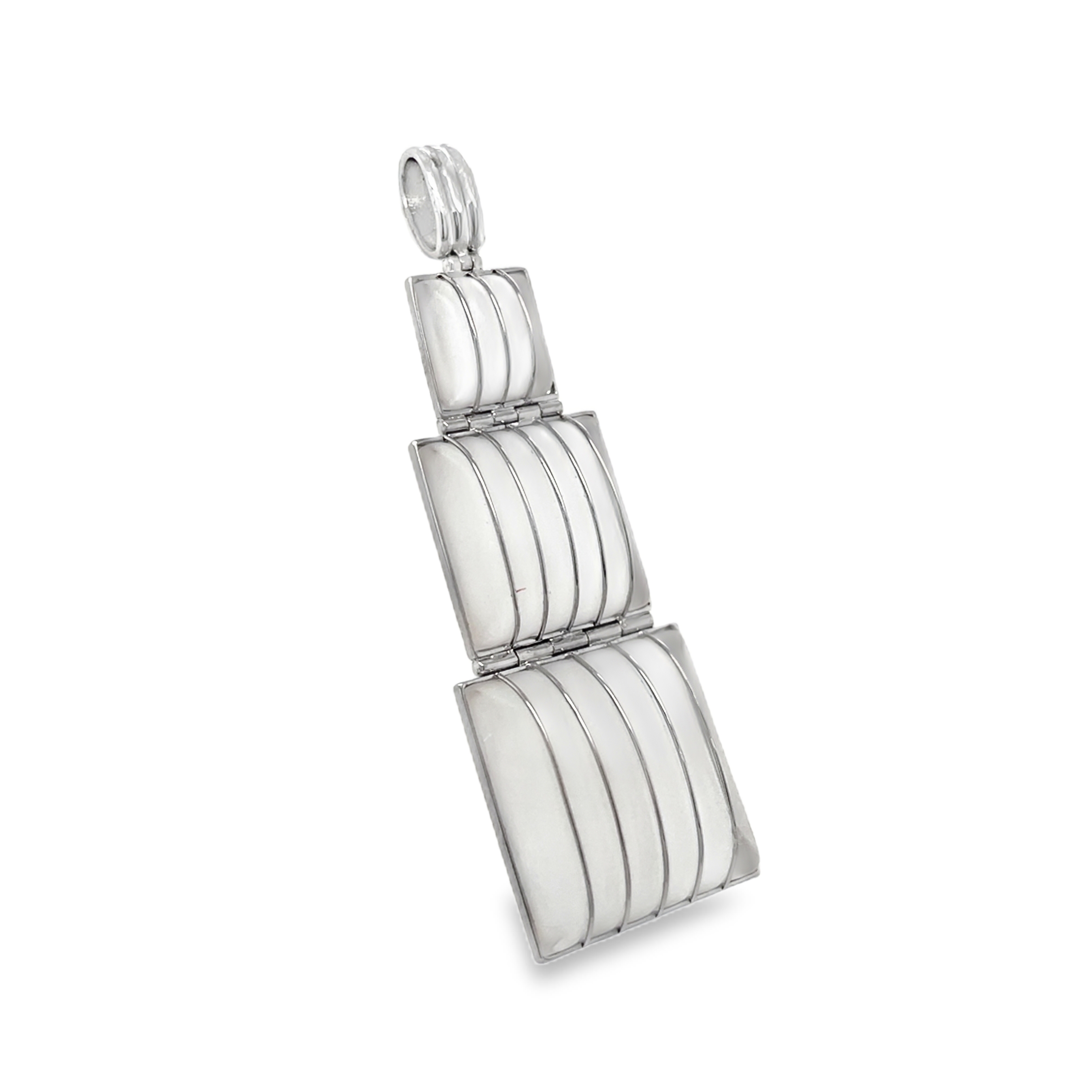 Zlatý závěs v art deco stylu, křišťálové leštěné destičky, z přední strany matované, v kombinaci s bílým zlatem, každý článek je ohebný, Au btto 11,40g/585/1000, současný šperk; délka 6,2 cm, šířka 2,1 cm