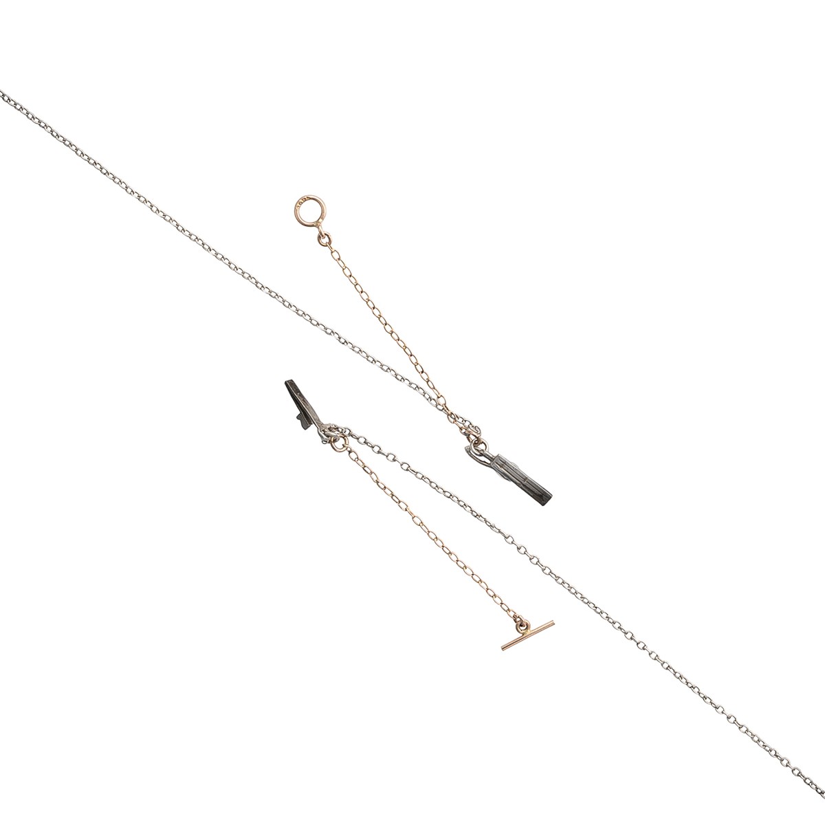 Materiál: stříbrný náhrdelník ryzosti 925/1000 s prodlužovacím řetízkem ze zlata ryzosti 333/1000 a bízem ze zlata ryzosti 416/1000