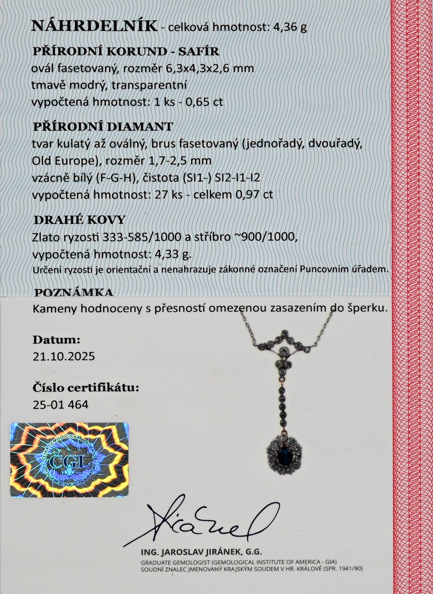 -certifikát gemologické laboratoře je součástí šperku