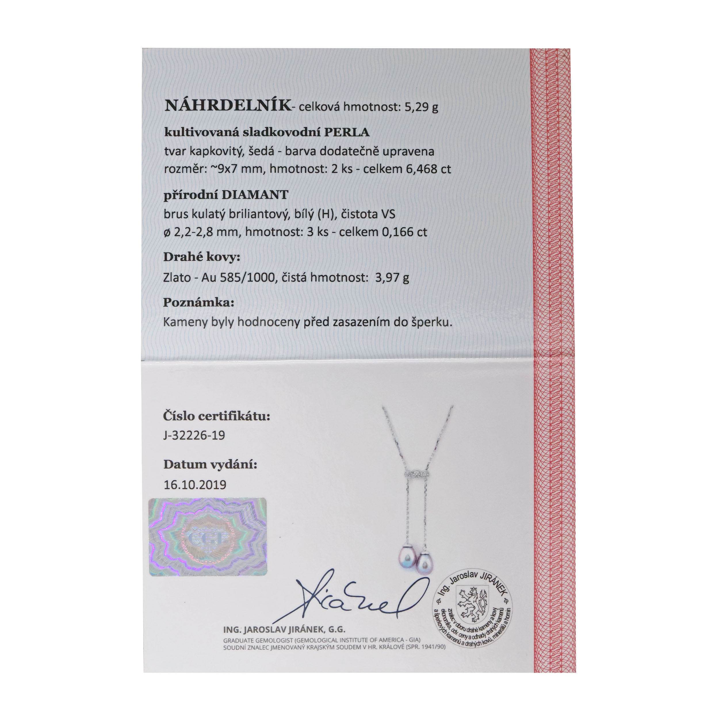 PŘILOŽEN CERTIFIKÁT PRAVOSTI ČGL