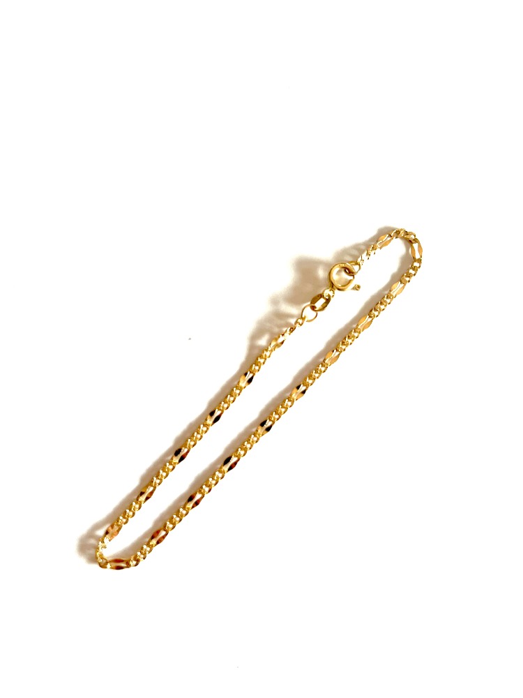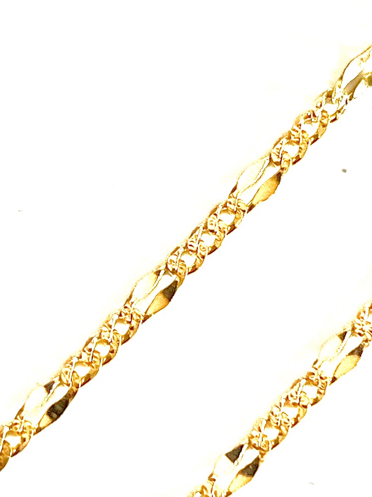 Zlatý náramek ze žlutého 14 karátového zlata – AU 585/1000, váha netto 1,71 gramů. Články náramku jsou ozdobně gravírované a náramek se třpytí.
