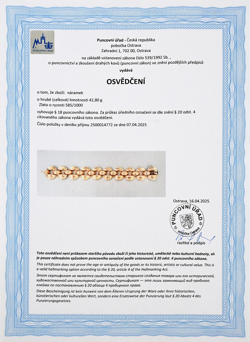 Osvědčení Puncovního úřadu České republiky