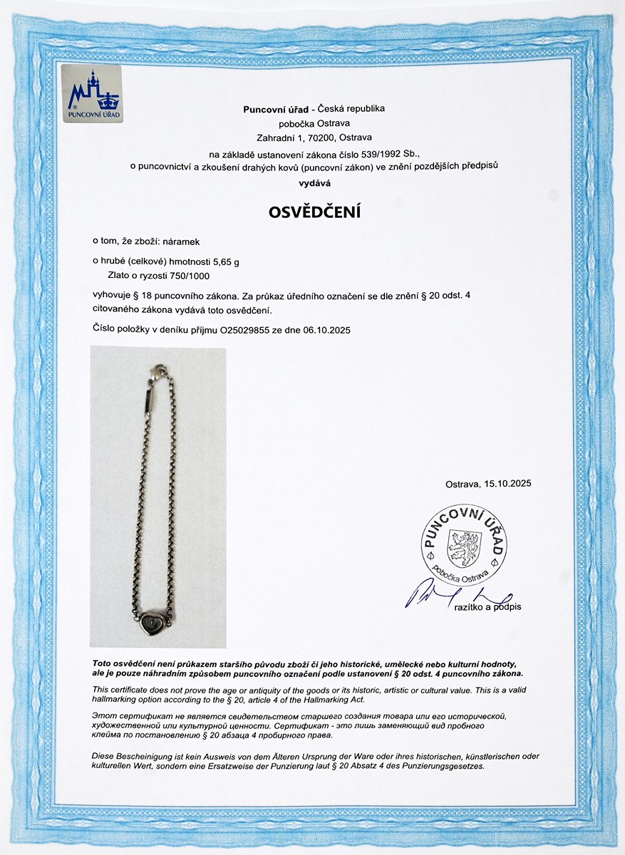 osvědčení puncovního úřadu