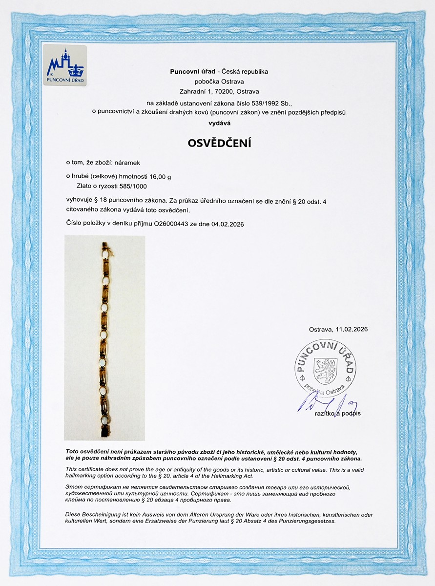 Kontrola pravosti byla provedena gemologickou laboratoři a je vedena pod jejich evidenčním číslem, které je uvedeno v našem certifikátu.