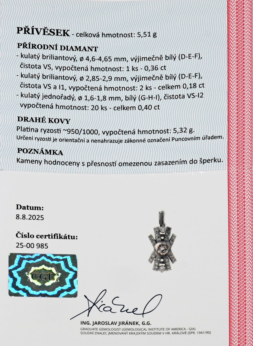 certifikát gemologické laboratoře je součástí šperku