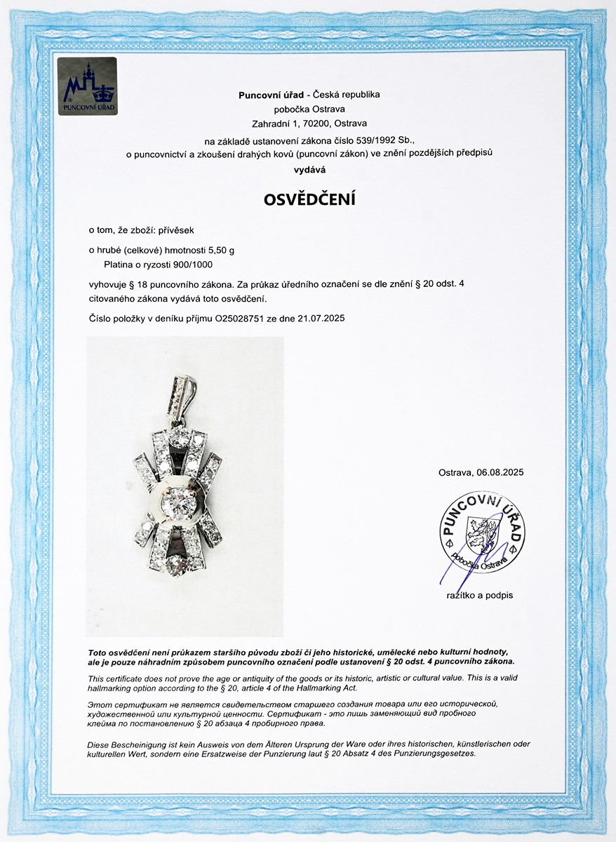 osvědčení Puncovního úřadu České republiky