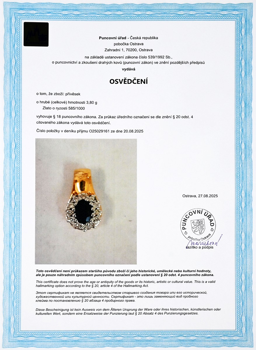 osvědčení puncovního úřadu | řetízek není součásti aukce
