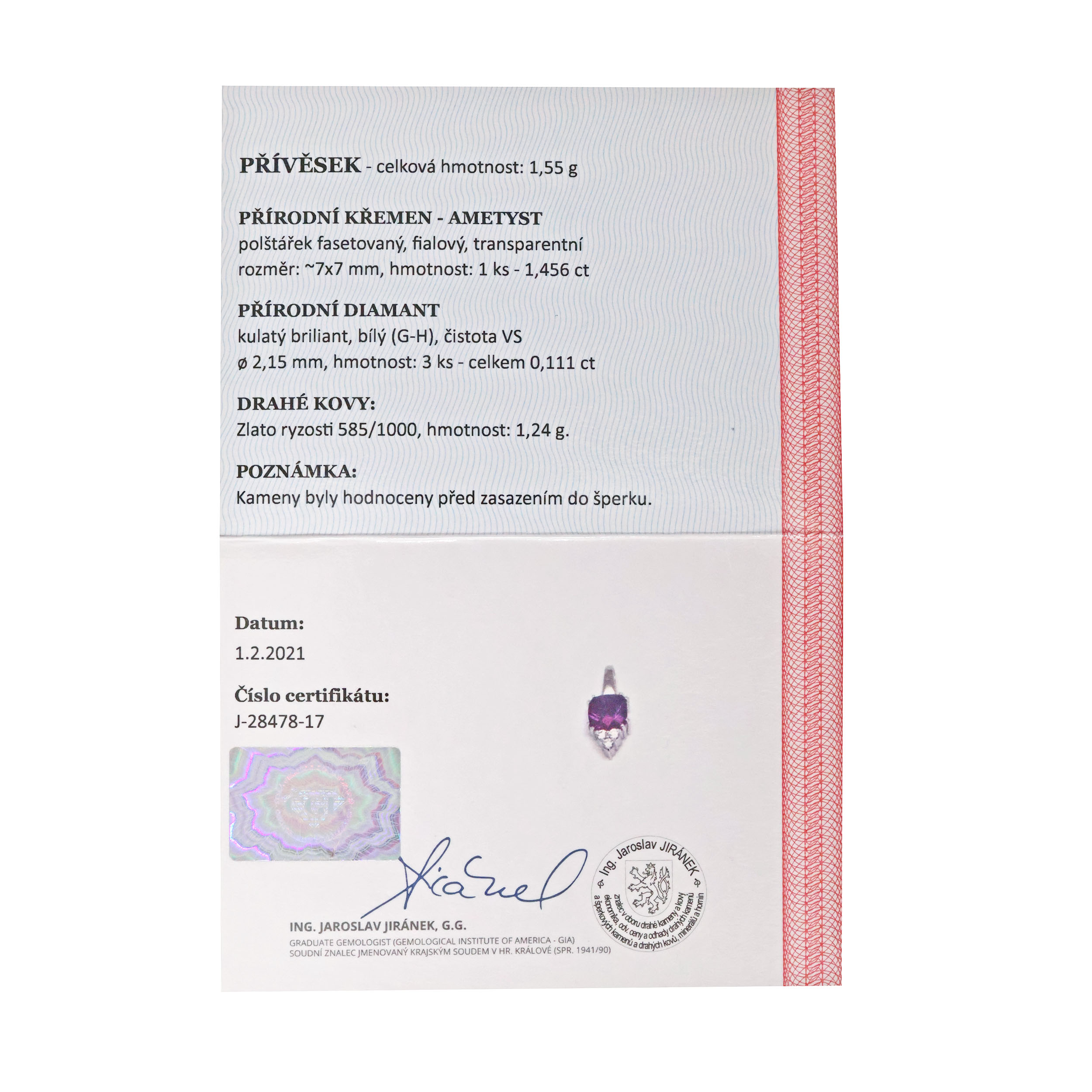 14 karátové bílé zlato 585/1000, celková hmotnost 1,55 g