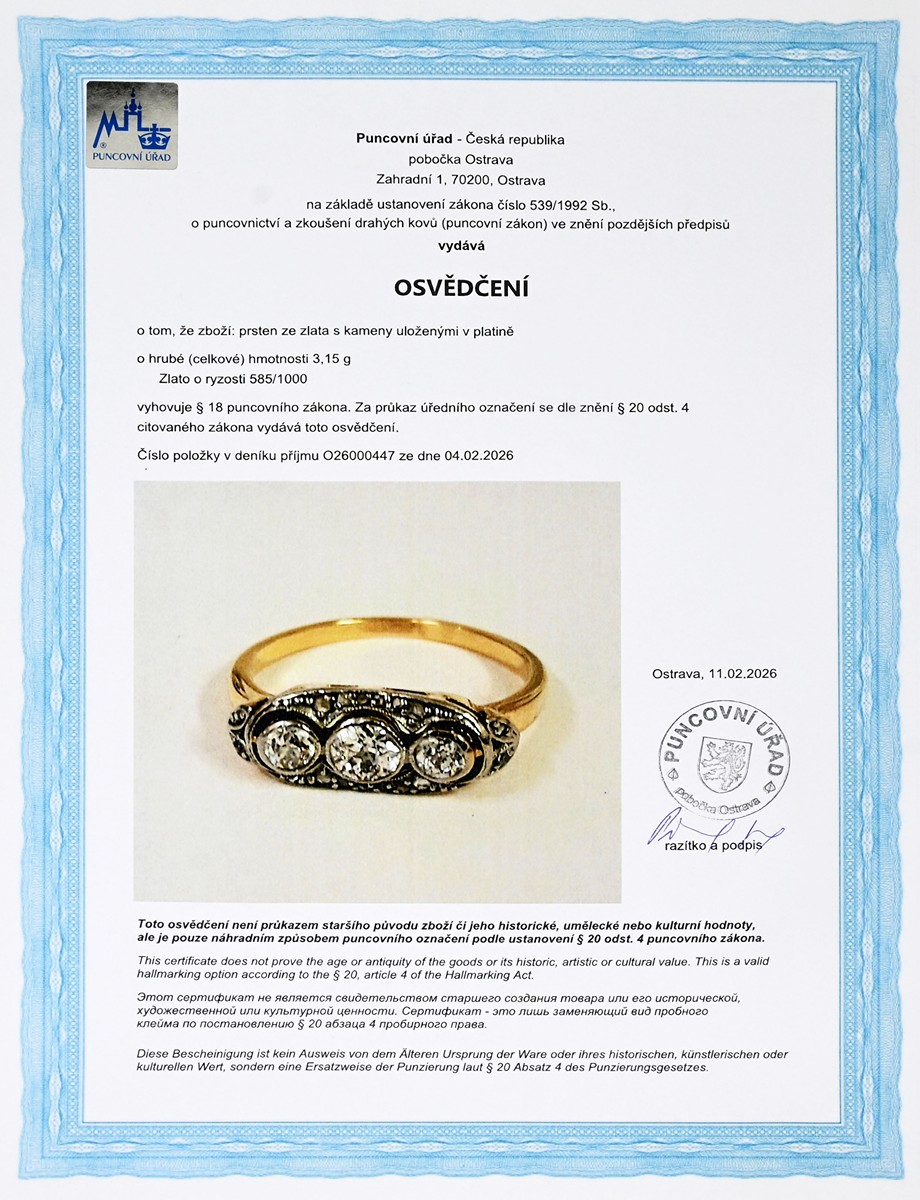 – přírodní diamanty, celková hmotnost cca 0,45 ct