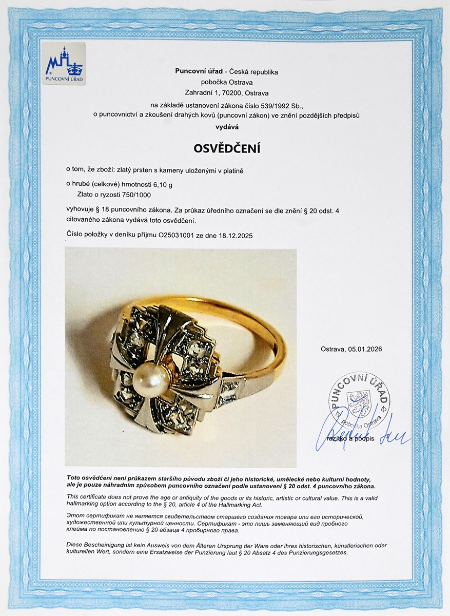 – osvědčení Puncovního úřadu České republiky