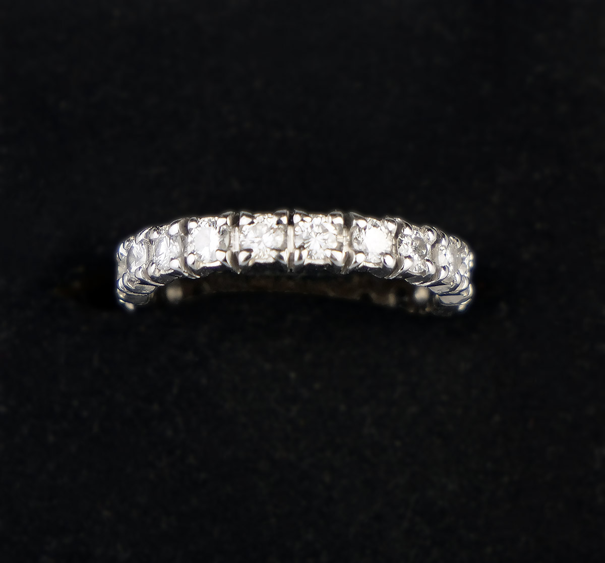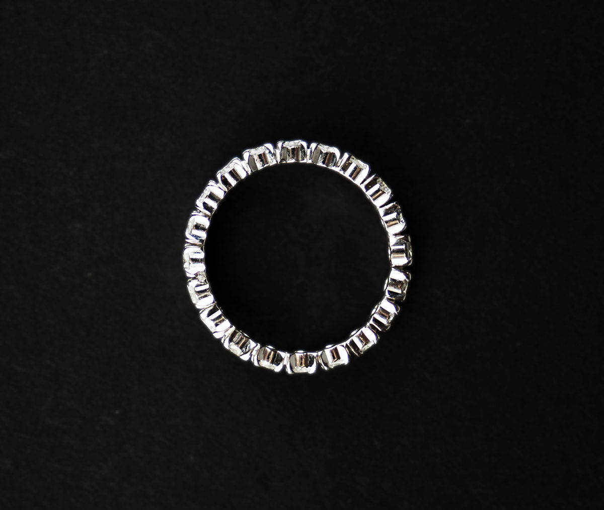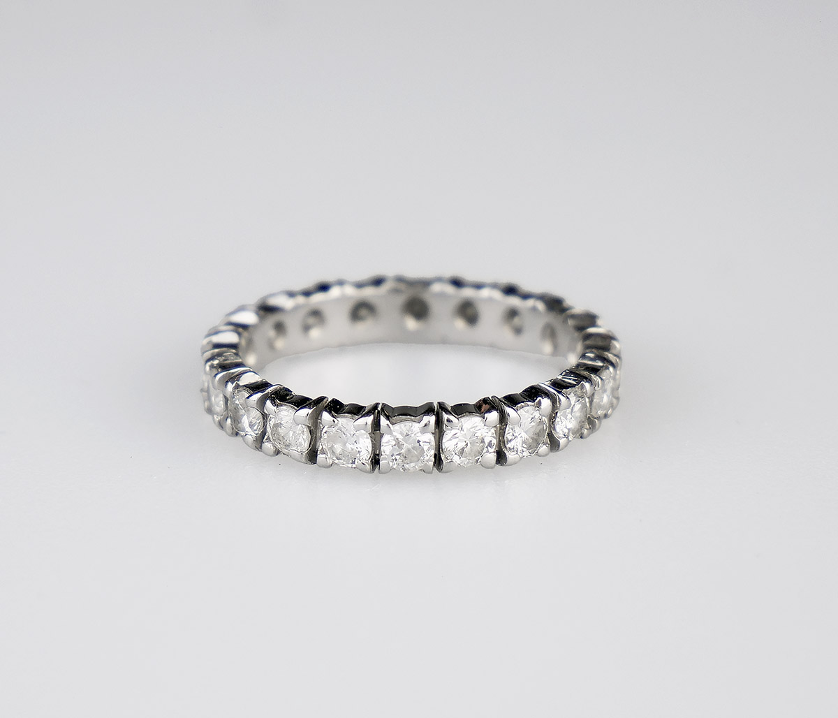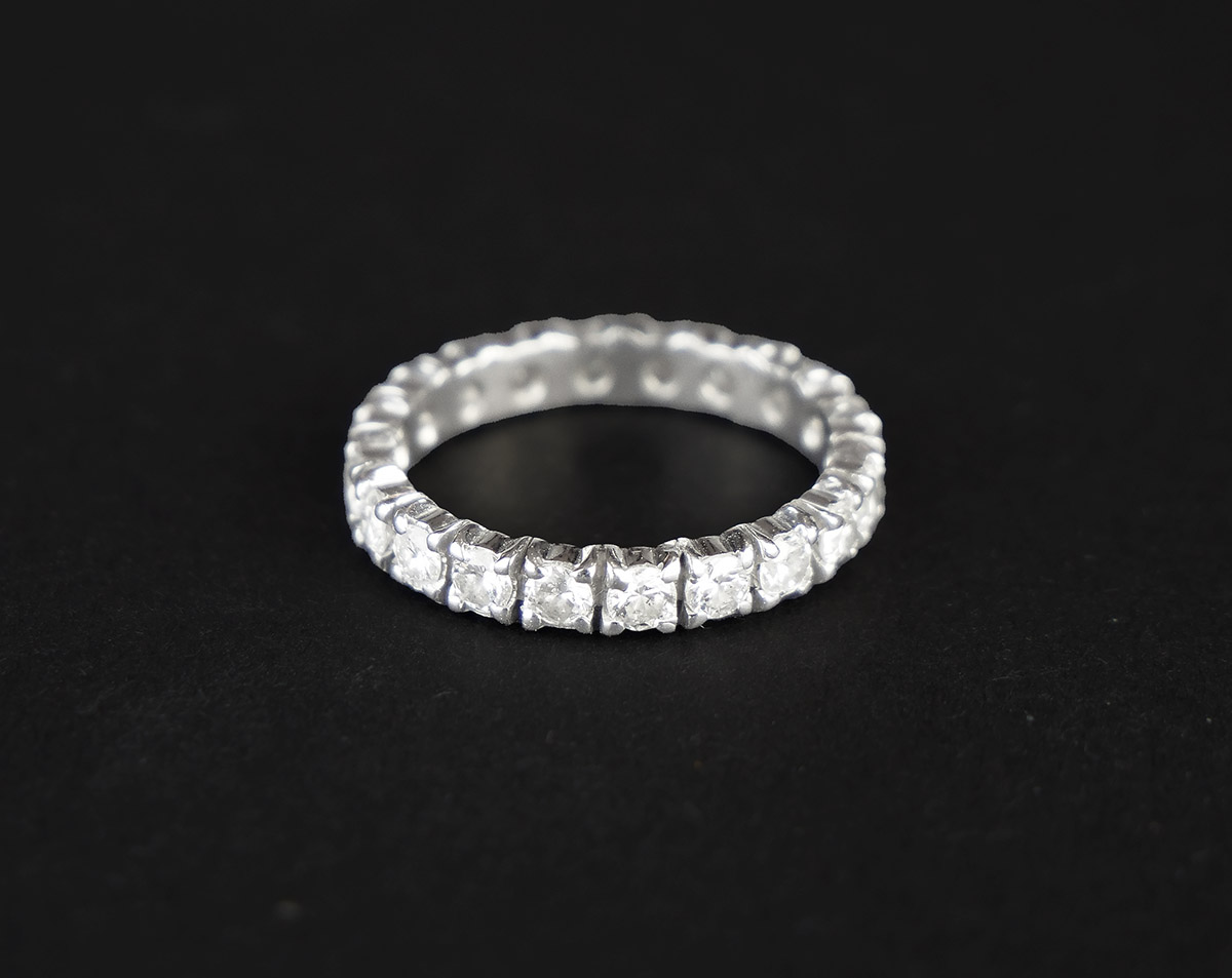 Zlatý prsten eternity s diamanty, 20 ks diamantů briliantového brusu o hmotnosti 0,80 ct, kvalita VS, barva G-H. Celková hmotnost Au 2,44 g/750/1000, punc. Západní Evropa, začátek 21. století, velikost prstenu 49.
