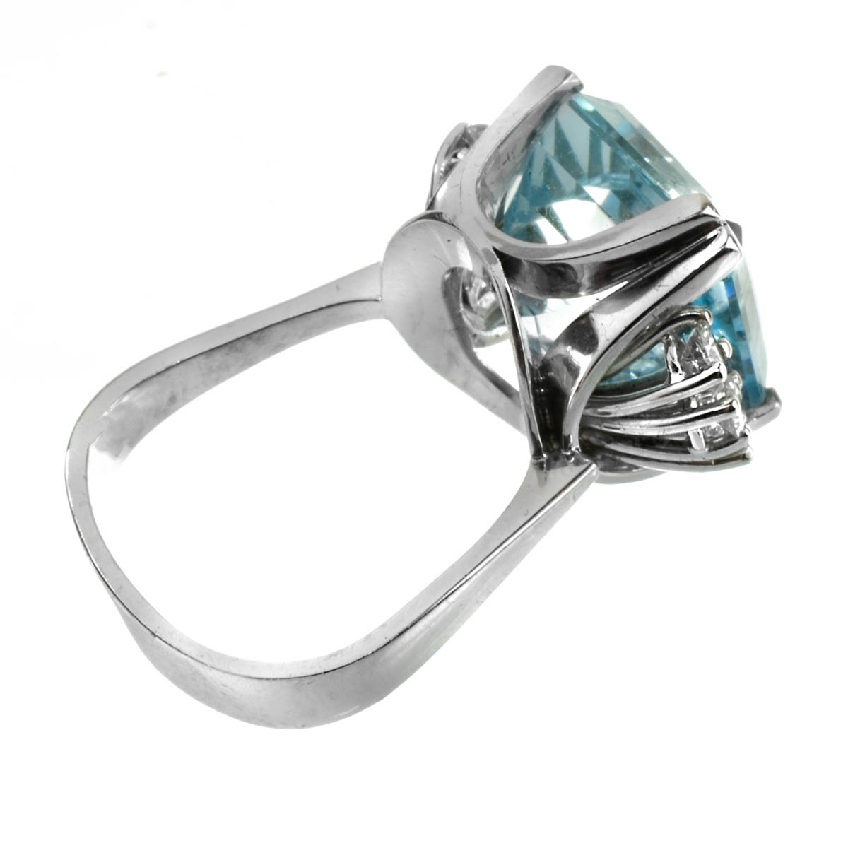 Prsten z bílého zlata s mimořádně kvalitním sytě modrým akvamarínem a brilianty. Designové zpracování.