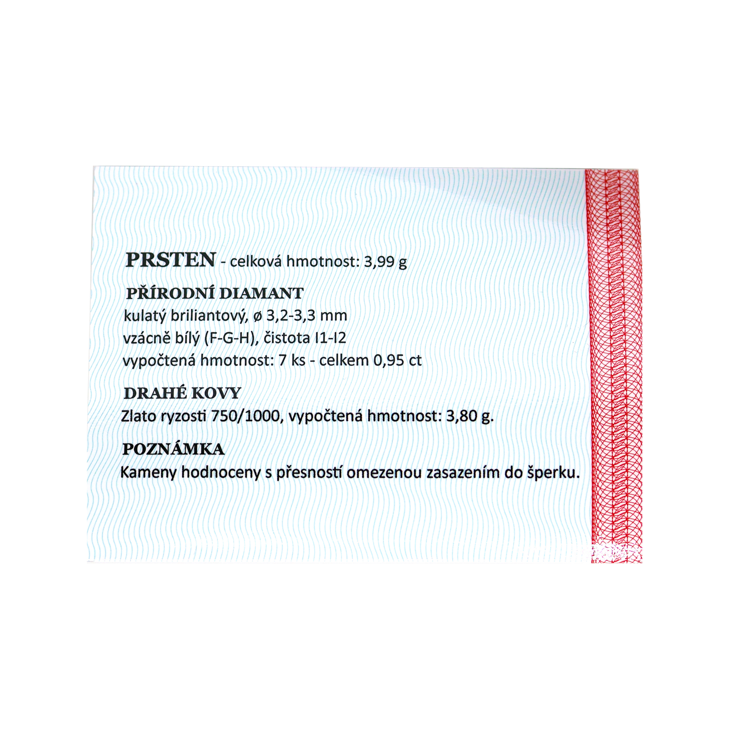 18 karátové zlato 750/1000, celková hmotnost 3,99g