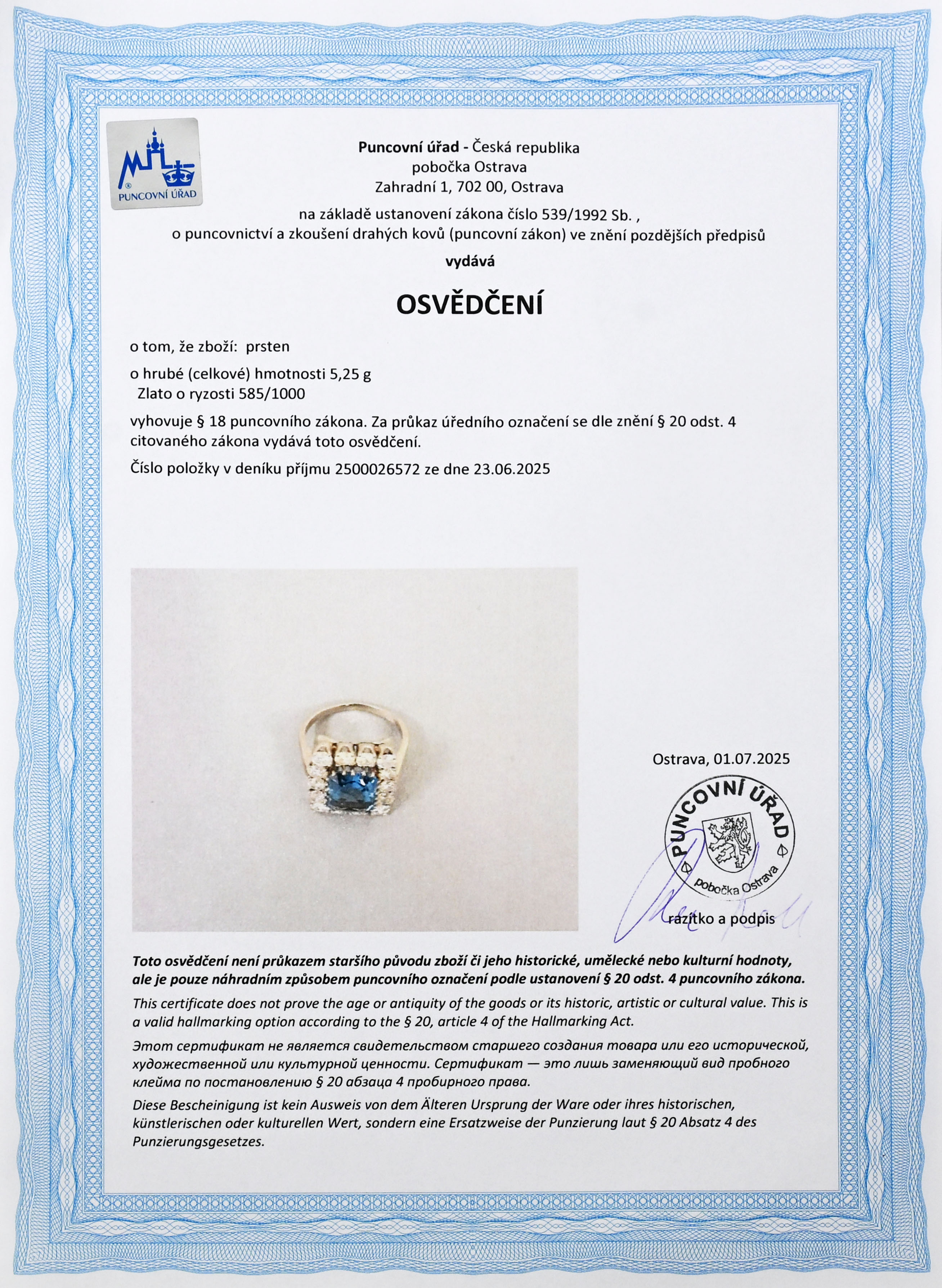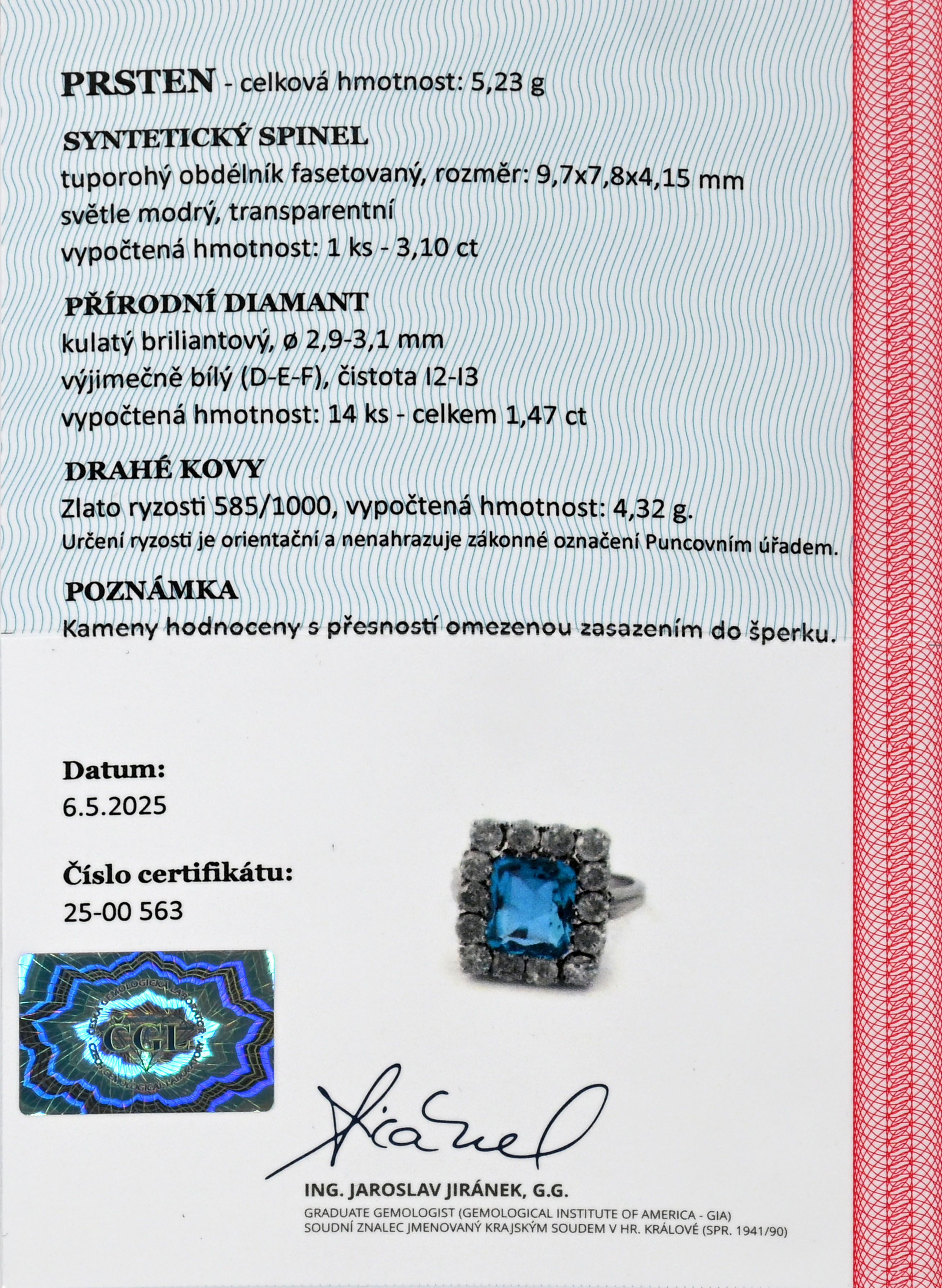 • 14 ks přírodních diamantů, celkem 1,47 ct, výjimečně bílý (D–E–F), čistota I2–I3